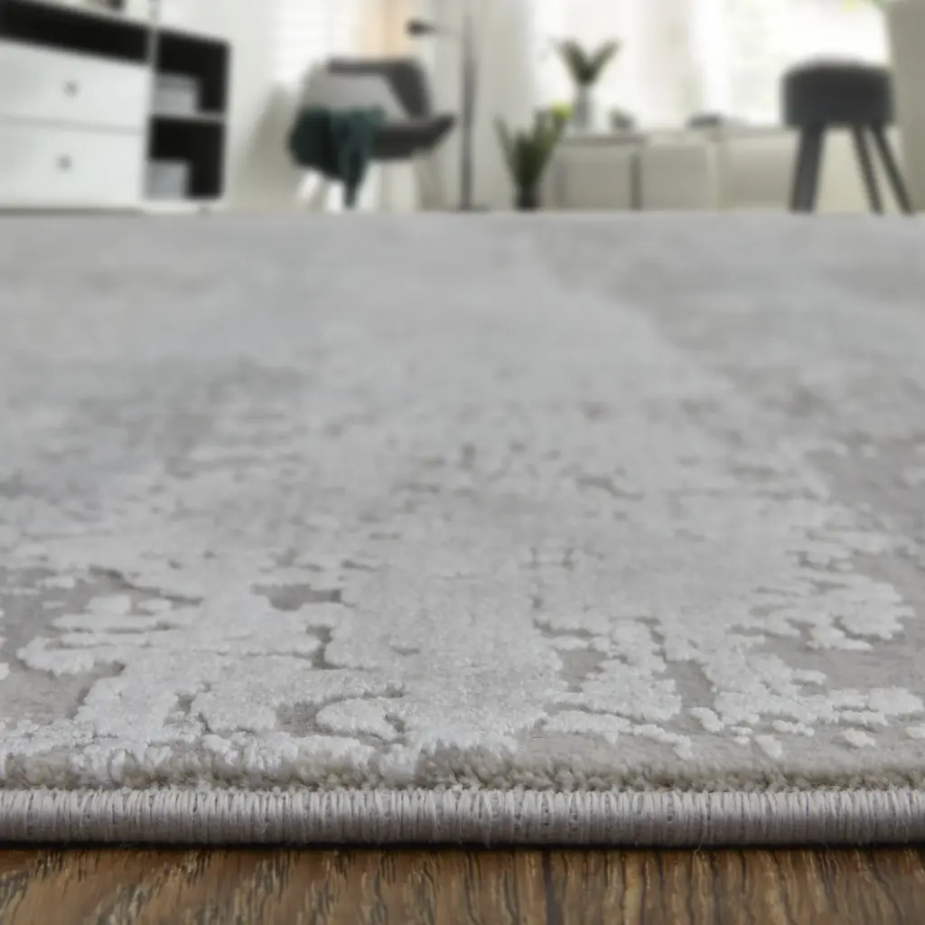 Collection: Cadiz Colors: Taupe, Gray, Silver Gray Construction: Machine Made Material: Face: Viscose, Acrylic / Warp: Cotton Pile: Low Pile Pile Height: 0.32" Styles: Contemporary,Industrial,Luxury & Glam Backing: Cotton Made In: Turkey Thickness: 0.32" Price Range: $$$$$ (Premium)