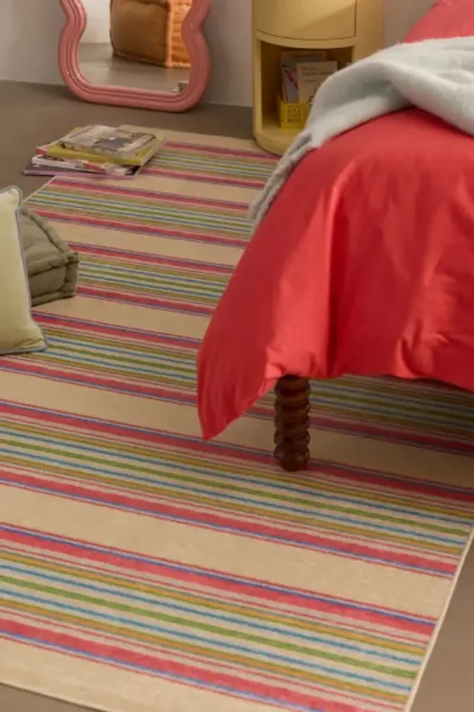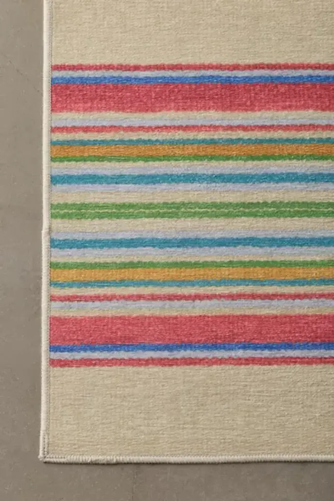 Create an inviting space with this machine washable area rug featuring vibrant stripes allover the top. This area rug offers a durable polyester fabrication that’s perfect for holding up against pets and people. **Features** \- Cady Striped Washable Rug \- Durable area rug featuring a vibrant striped design \- Easy to clean - just toss it in the washing machine \- Anti-slip backing keeps your rug in place **Content + Care** \- 100% Polyester \- Machine wash \- Imported