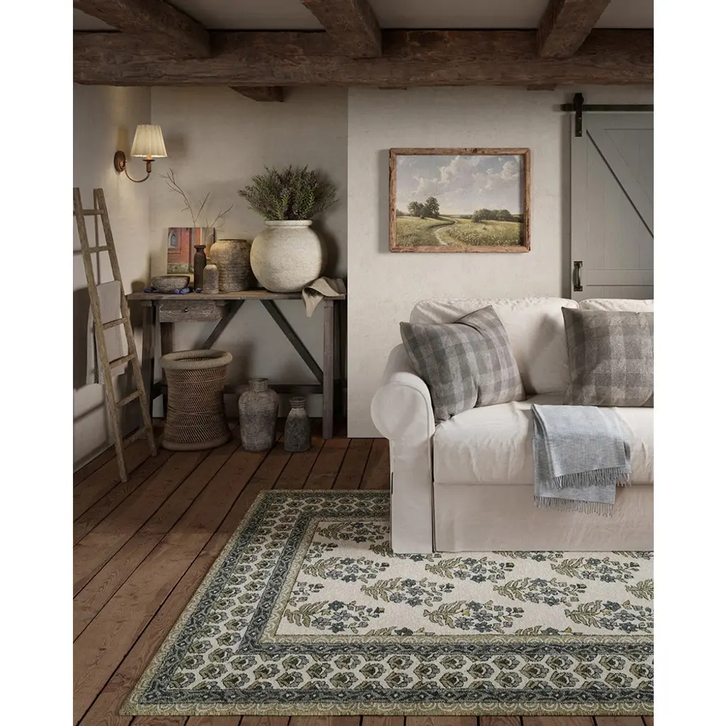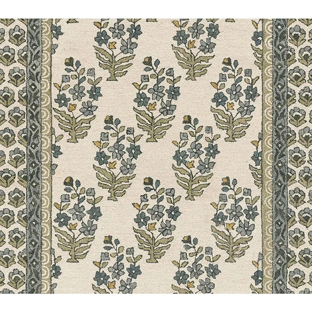 Cailee Updated Traditional Green Wool Floral Patterned Rug - 3'6"x5'6"