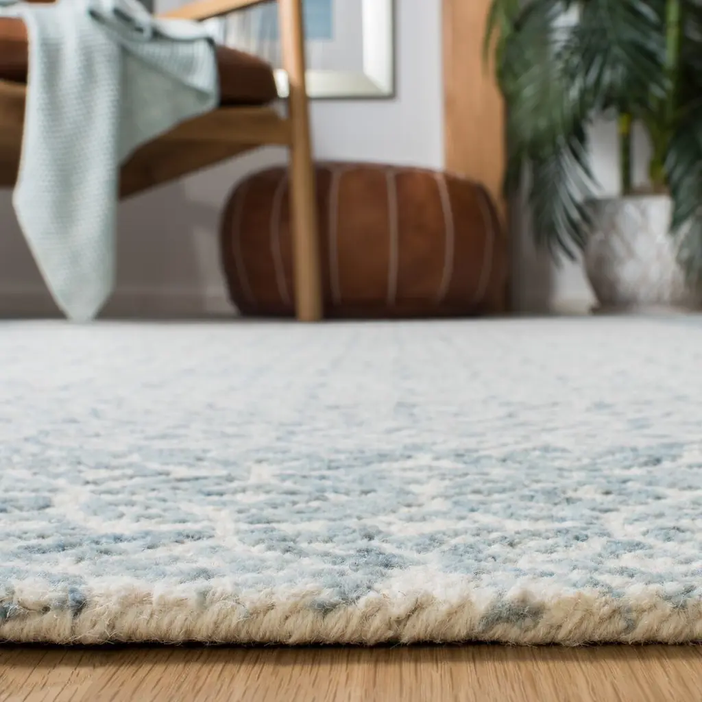 Elevate your living space with the sublime elegance of this Hand Tufted 4' x 6' Small Rectangle area rug, boasting a graceful Blue/Ivory color palette. The intricate pattern, inspired by traditional motifs, is rendered in calming shades that infuse serenity into any room. Expertly crafted in India, this rug features a blend of 80% Wool and 20% Cotton, promising both warmth and durability. With a comfortable height of 3/8", this piece promises a plush underfoot experience without compromising on style. Although not machine washable, its high-quality construction ensures longevity and ease of care in your sophisticated home. Note that this rug is not slip resistant; a rug pad is recommended to maintain its position and protect your floors. Suitable for a variety of interiors, it is an ideal choice for those looking to add a touch of artisanal charm and timeless elegance to their decor.