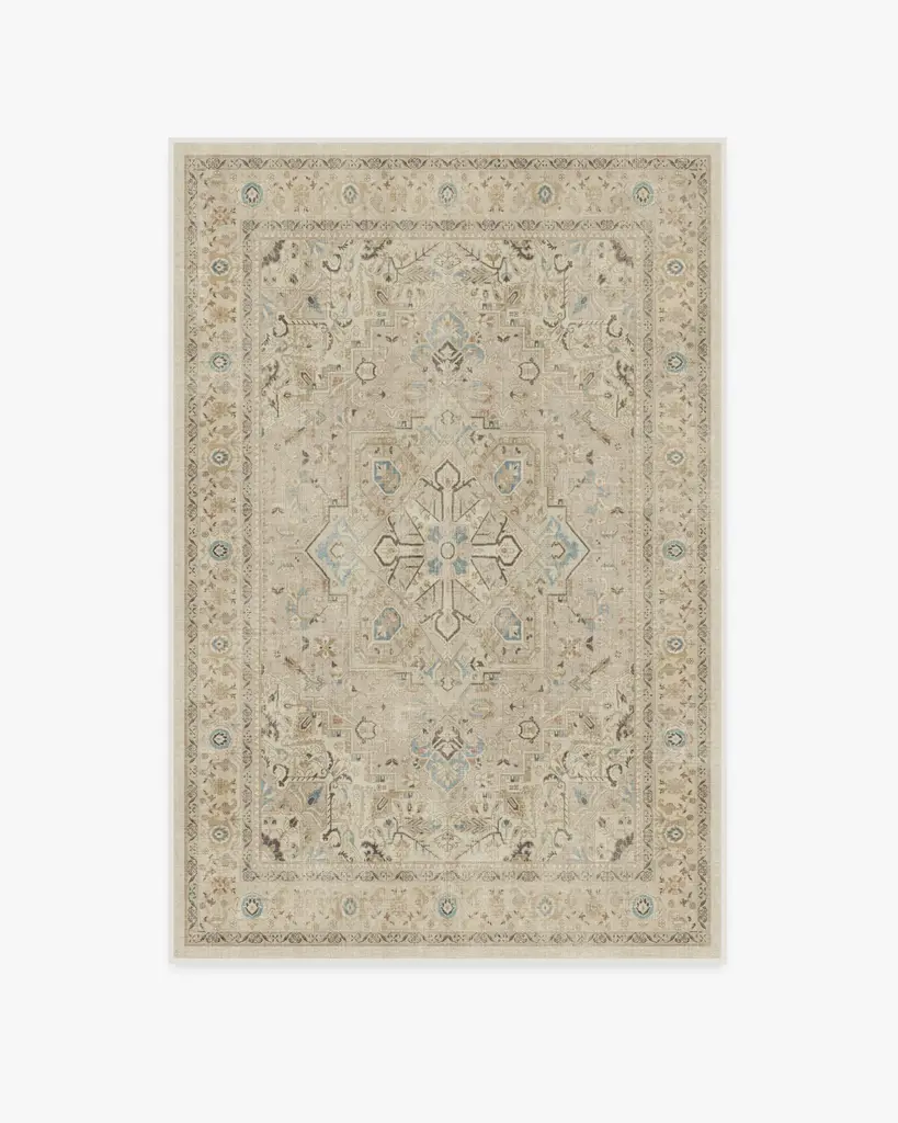 **Please note that all sales are final.**A beautiful antique-inspired Persian rug created in the perfect shades for any space. Dress it up with coordinating pillows or juxtapose it with casual furnishings for a layered look. From foyers to dining rooms, bedrooms, and kitchens- this versatile rug works beautifully for both the modern and traditional.All lead times are estimates and might be subject to change.**Details** * 100% New Zealand Wool Pile* Made in India* Each rug is custom made to order* To extend the life of the rug, our premium CW rug pad is recommended (sold separately)* Rotate your rug every 6 months to prevent excessive wear and sunlight exposure on the surface of the rug* Use rug protectors under the legs of heavy furniture to avoid flattening the yarn pile* Vacuum regularly on a low-power setting to prevent dirt from settling into the fibers and yarns. Do not vacuum rug fringe* Professional rug cleaning recommended* Some shedding will occur due to the nature of the wool yarns, but should diminish over time. Do not pull loose yarns, instead clip with scissors* Colors are subject to a 5-15% shade band (difference in colorfastness) due to the hand-made nature of the product. As a rug size goes up, the pattern, scale of motifs, and border adapt to a larger size. Rug length and width can vary 1-3" from the sizing standard due to the handmade nature of the product.