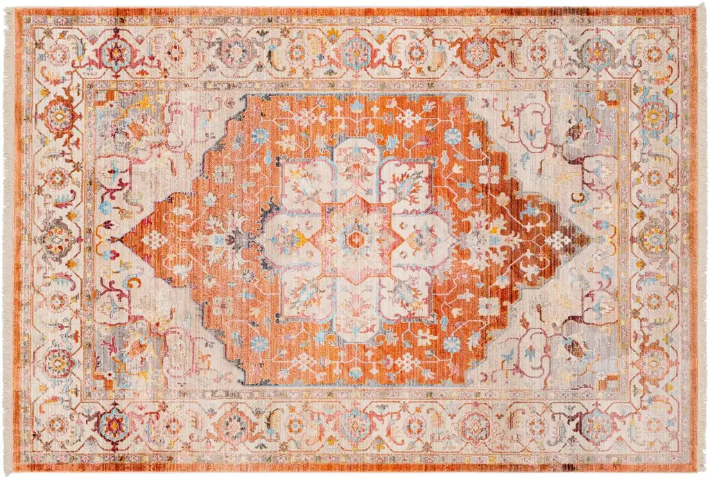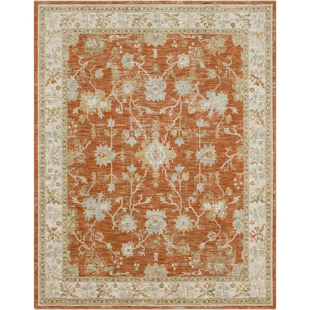 Inspired by vintage Persian designs, our Calabria Coral Multicolor Rug features organic floral and foliage motifs arranged with dstressing and needlepoint textures to give a vintage, coastal feel. Its palette includes citron, neutrals, blues, yellows, reds, and pinks, all set against a coral background with a navy border. Water-resistant, stain-resistant, and machine-washable. Rug colors may vary slightly according to your device and the lighting in your space.