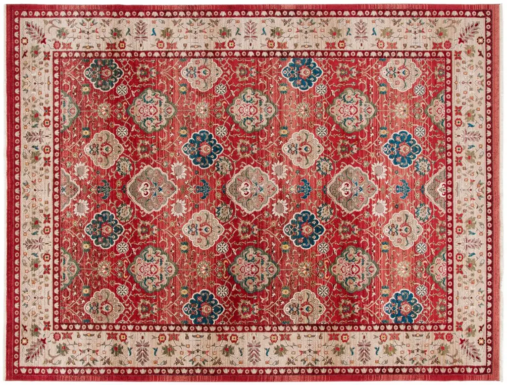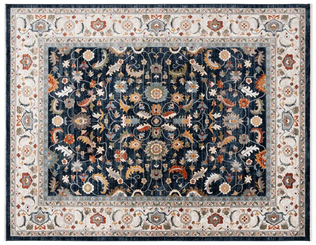 Weave yourself in a timeless tapestry of color and craft. The Calabria Navy & Cayenne Rug channels vintage Persian elegance with mirrored floral motifs, ornamental borders, and rich needlepoint textures. Deep navy, soft blues, and warm cayenne reds with hints of gold evoke a beautifully aged, storied feel. Water-resistant, stain-resistant, and machine-washable. Colors may vary by device and lighting.