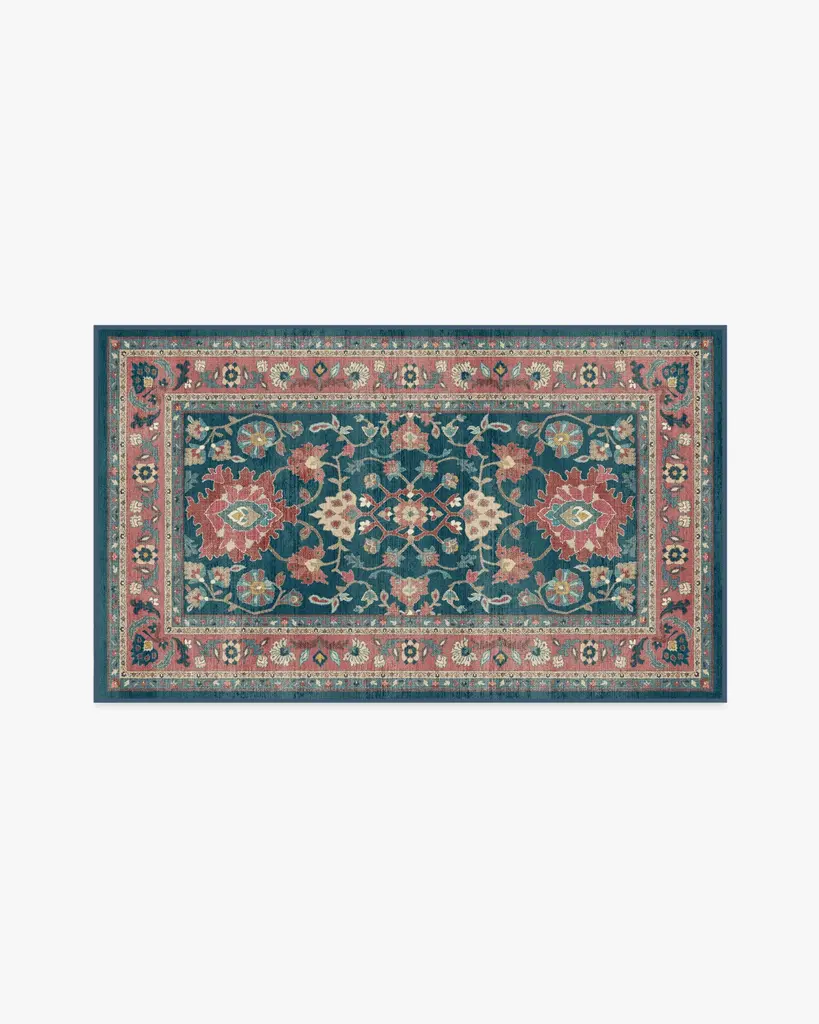 Weave yourself in a timeless tapestry of color and craft. The Calabria Navy & Cayenne Rug channels vintage Persian elegance with mirrored floral motifs, ornamental borders, and rich needlepoint textures. Deep navy, soft blues, and warm cayenne reds with hints of gold evoke a beautifully aged, storied feel. Water-resistant, stain-resistant, and machine-washable. Colors may vary by device and lighting.