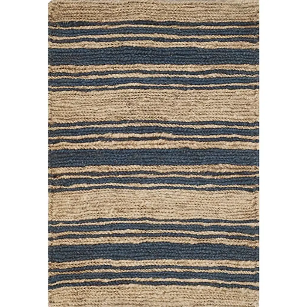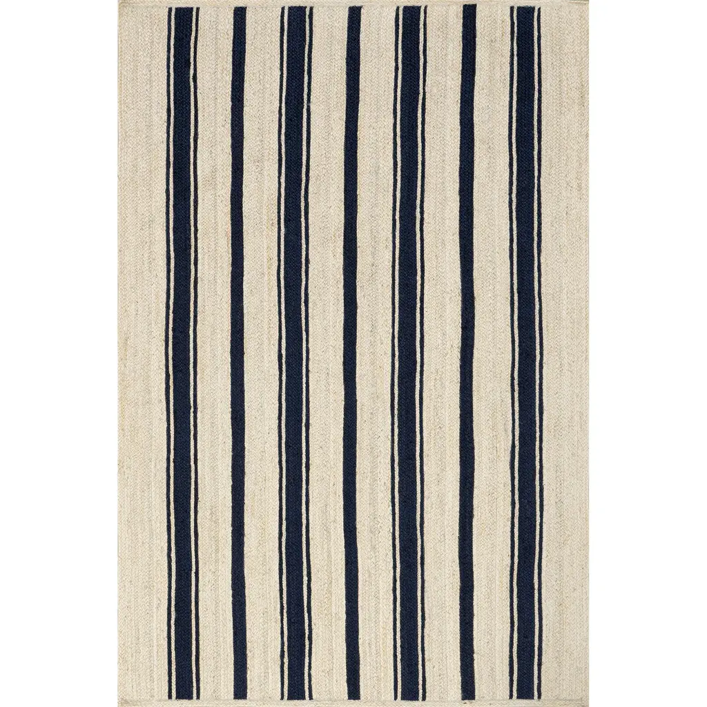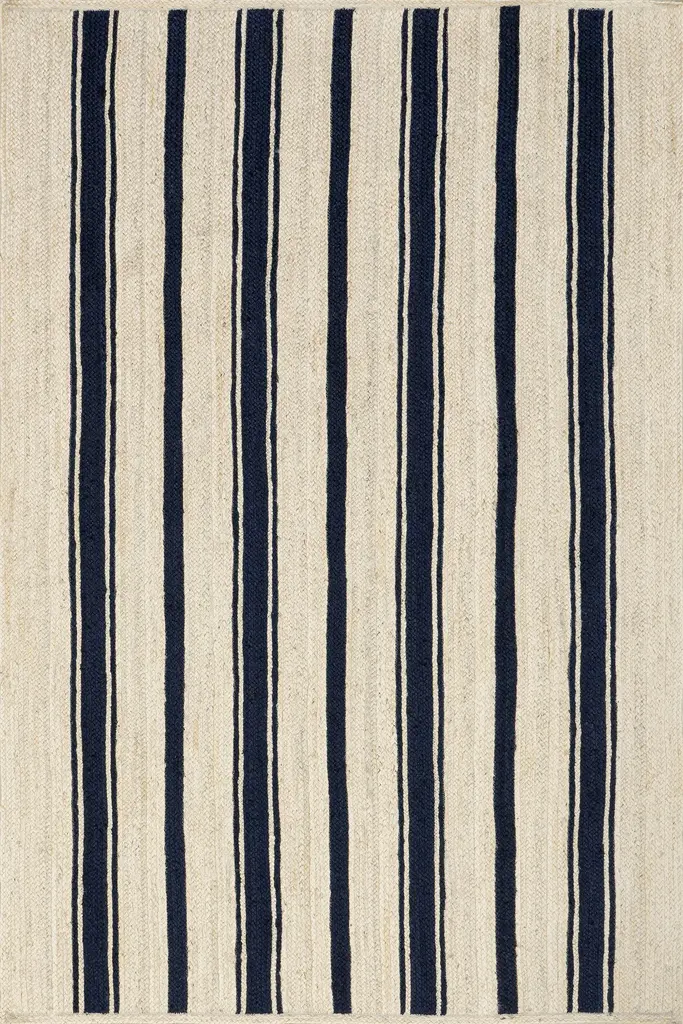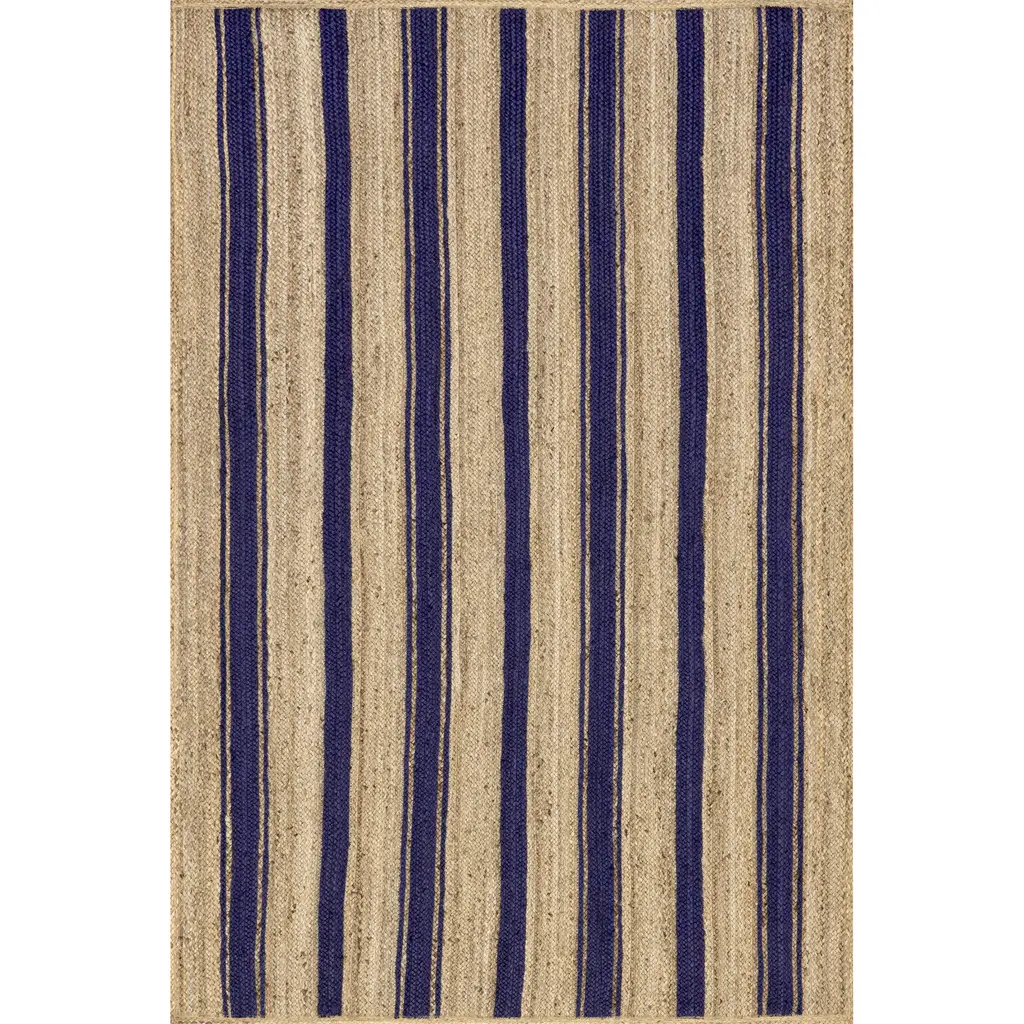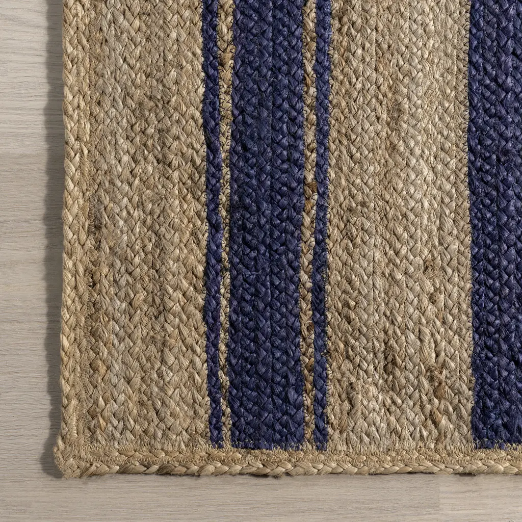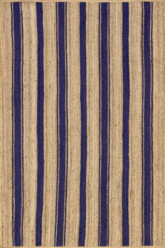 Calathea Striped Jute Area Rug, Royal Blue 6'x9'