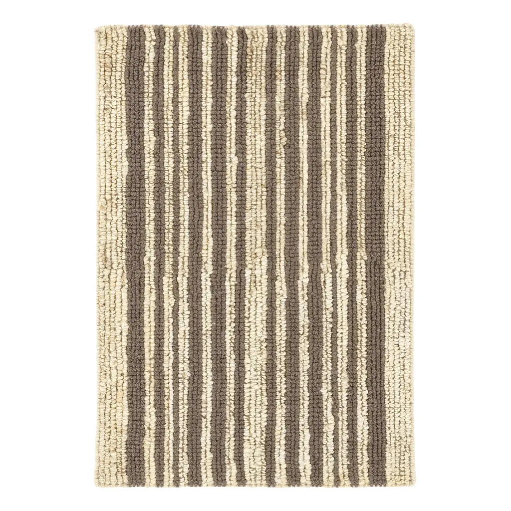 Need a good reason to look underfoot? This durable, sustainable jute rug will add a cushiony, chunky dose of casual character and welcoming soul to your home. Undyed looped stripes are handworked to give a slubby twist to the fiber. The dense curly surface texture alternates with nubby wool stripes in soft, earthy, mineral shades. Part of a collection designed by Marie Flanigan, the Architect, Designer, Founder, and Principal of Marie Flanigan Interiors whose signature style is imbued with timeless elegance and innovative simplicity.