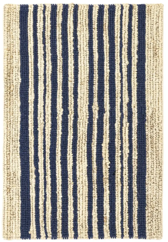 Need a good reason to look underfoot? This durable, sustainable jute rug will add a cushiony, chunky dose of casual character and welcoming soul to your home. Undyed looped stripes are handworked to give a slubby twist to the fiber. The dense curly surface texture alternates with nubby wool stripes in soft, earthy, mineral shades. Part of a collection designed by Marie Flanigan, the Architect, Designer, Founder, and Principal of Marie Flanigan Interiors whose signature style is imbued with timeless elegance and innovative simplicity.