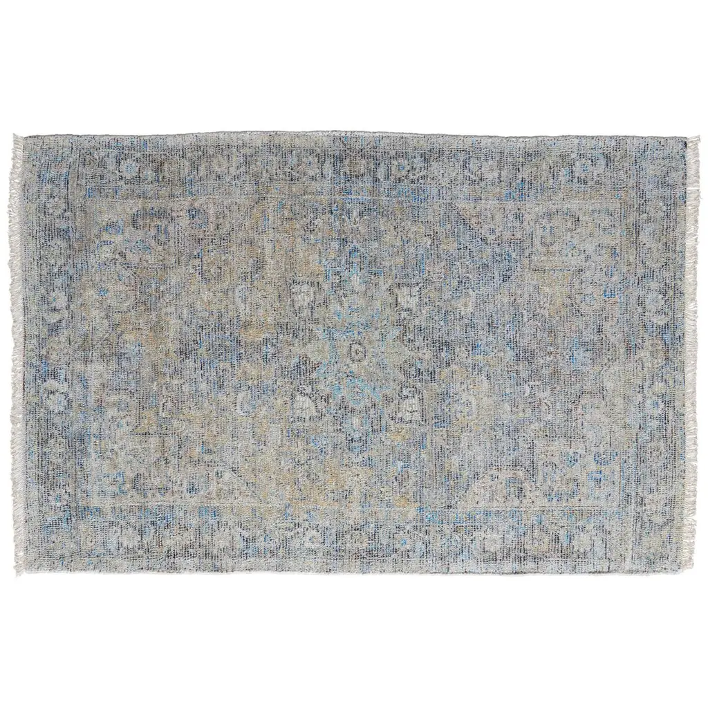 Collection: Caldwell Colors: Blue, Gray, Taupe Construction: Hand Woven Material: Face: Wool, Viscose Pile: Low Pile Pile Height: 0.4" Styles: Transitional,Vintage,Bohemian & Eclectic Backing: N/A Made In: India Thickness: 0.4" Price Range: $$$$$ (Affordable)