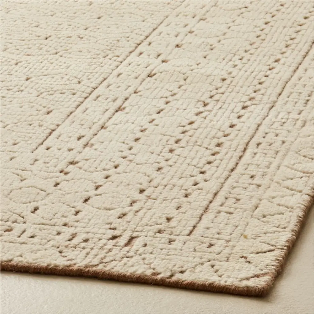 Echoing the intricate motifs of traditional Persian rugs, our hand-knotted New Zealand wool rug is a one-of-a-kind work of art. Skilled weavers tightly knot textured wool yarn line by linea technique that requires a great deal of skill for this intricate design. CB2 exclusive.How will it look in your room? 12"x12" rug samples are available in stores for a fee refundable upon return of the sample.