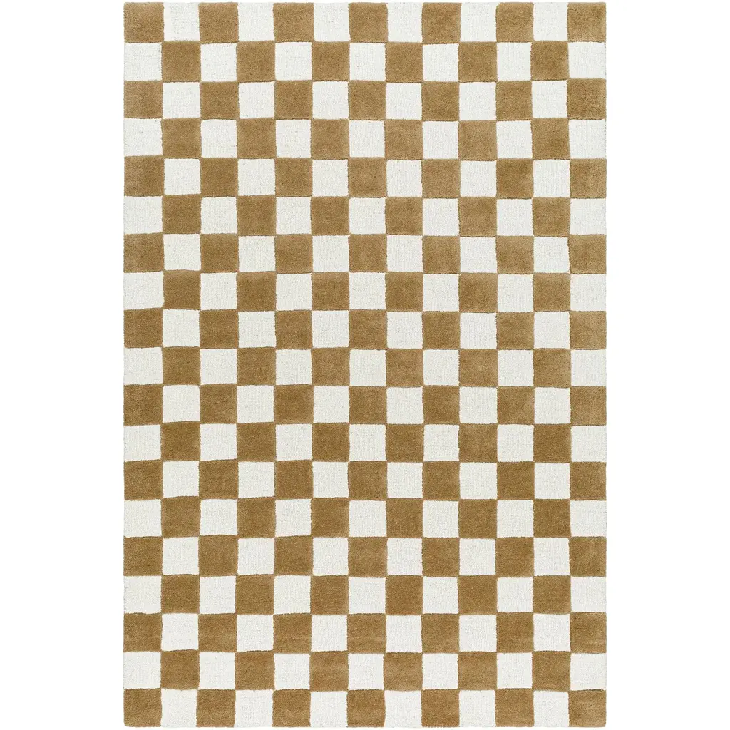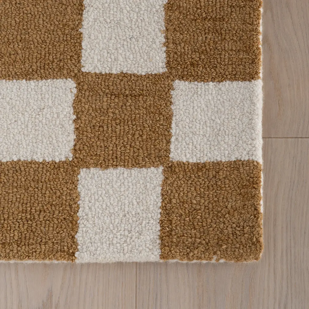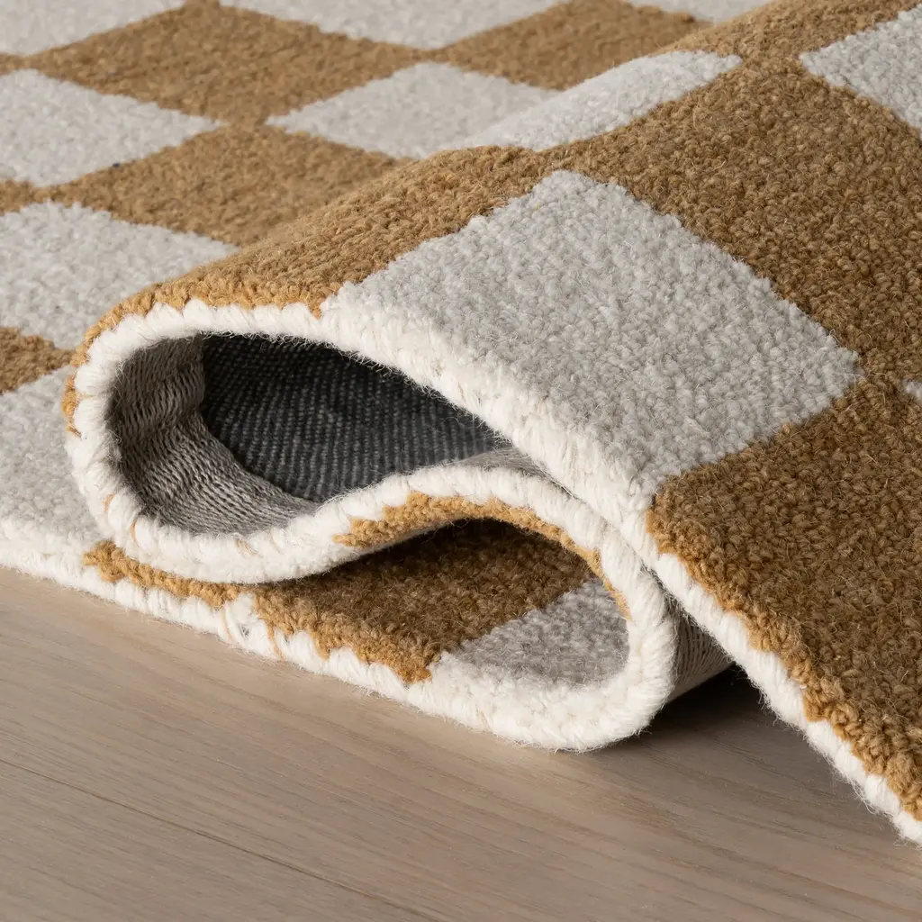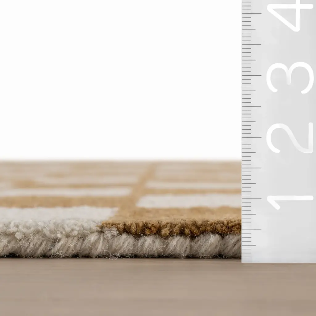 Calina Modern Checkered Indoor Wool Rug | Golden Tan - 6' X 9'