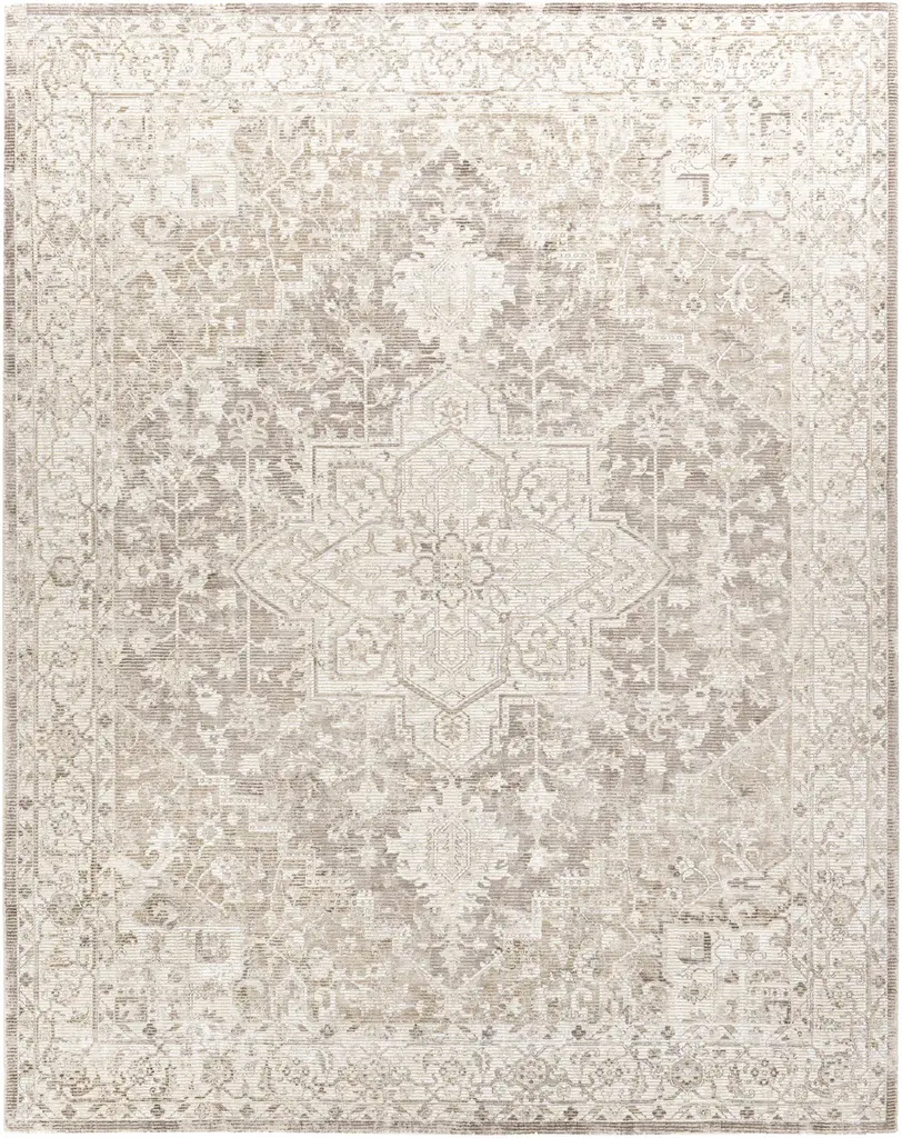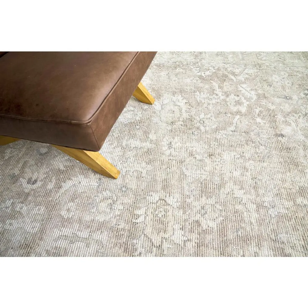 Calla Global Bazaar Tan Wool Oushak Patterned Rug - 6'x9'