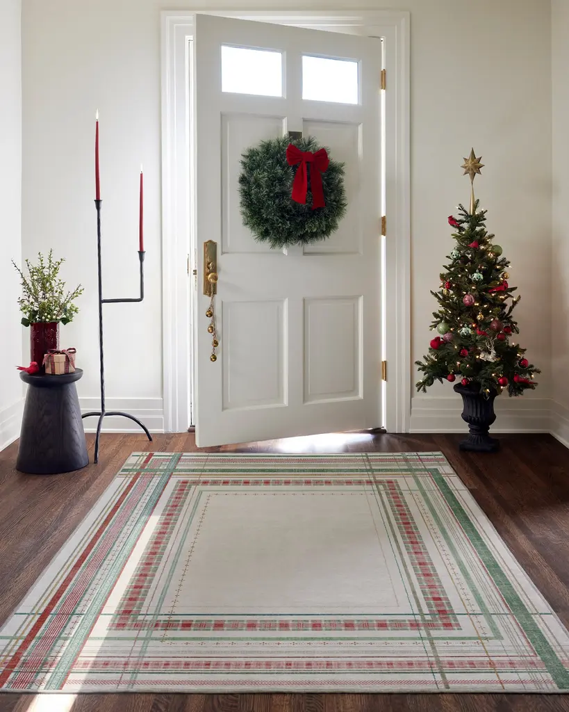 Add some ribbon into the mix. The totally reimagined Callie Holiday Multicolor Rug brings the holiday charm with the addition of vintage tartan and colorful ribbons for a festive remix. It’s the perfect combo of classic holiday vibes and modern style (without any holiday party stains or messes). Water-resistant, stain-resistant, and machine-washable. Colors may vary by device and lighting.
