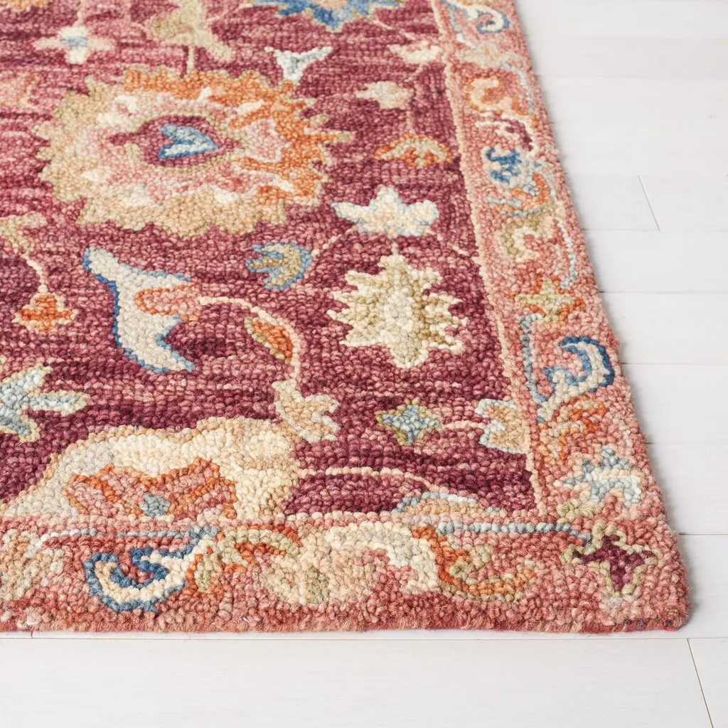 Introducing our exquisite Bohemian-style area rug, a masterpiece of artisanal craftsmanship and timeless design. Measuring 3' X 5' with a cozy 1/2" pile height, this small rectangular rug creates an inviting atmosphere in any room. Hand-tufted in India, this rug boasts a luxurious blend of 85% wool and 15% cotton, offering both durability and softness underfoot. The vibrant red and soft pink tones set a warm and welcoming mood, while the intricate pattern, inspired by boho-chic motifs, adds an element of worldly elegance. The detailed design features a harmonious array of floral and geometric shapes that tell a story of traditional craftsmanship fused with modern aesthetics. Perfect for adding a splash of color and texture to your living space, bedroom, or study, this rug is a statement piece that blends beautifully with both contemporary and classic interiors. Embrace the artistry and cultural richness of this hand-tufted treasure, and let it be the centerpiece of your home decor.