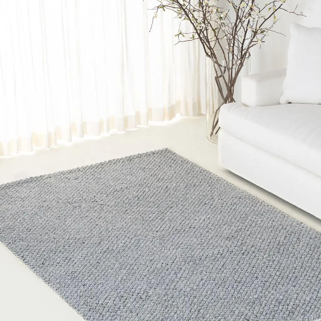 Introducing our exquisite Handwoven Area Rug, the perfect blend of timeless design and sustainable craftsmanship. Measuring a generous 8' x 10', this large rectangular rug commands presence in any room, creating a serene and sophisticated atmosphere with its elegant grey palette. Crafted with a plush height of 3/4", this rug offers a luxurious underfoot experience?an invitation to bare feet and relaxed living. The handwoven technique brings a level of artistry and uniqueness, with each weave contributing to the rug's character and strength. Meticulously made of 80% PET, a recycled and eco-friendly material, paired with 20% Cotton for extra softness, this rug is not only beautiful but also environmentally conscious. Its durability makes it suitable for high-traffic areas while maintaining a soft and inviting texture. The nuanced pattern, as showcased in the image provided, reveals a harmonious interplay of subtle variations and textures innate to handcrafted pieces. This design elevates the rug from a simple d?cor element to a centerpiece, capable of transforming any space with its understated elegance. Proudly made in India, this rug is a testament to the skilled artisans who combine traditional weaving techniques with modern design sensibilities. It's a versatile addition to your home d?cor, seamlessly fitting into a range of styles from contemporary to classic. Elevate your home with this handwoven treasure, a testament to sustainable luxury and timeless aesthetics.