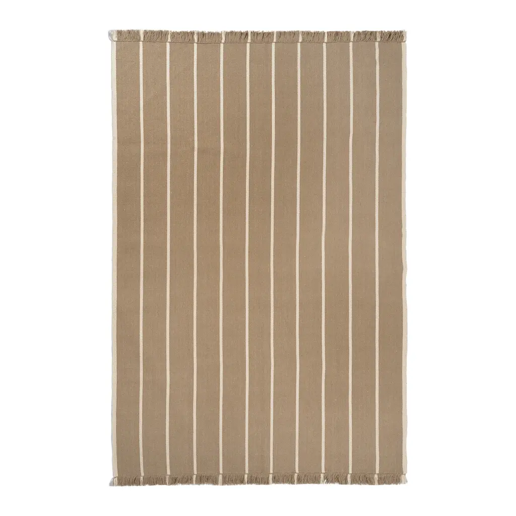 Elevate your space with the Calm Kelim Rug from Ferm Living. Handmade with 100% wool yarn, each rug is uniquely hand-dyed and woven on a traditional 'Punja' loom. The result is modern colorways and patterns infused with the timeless craftsmanship of traditional kelim techniques. Plus, the coarse texture adds an extra touch of tactile charm to your living room or entertainment space. Highlights