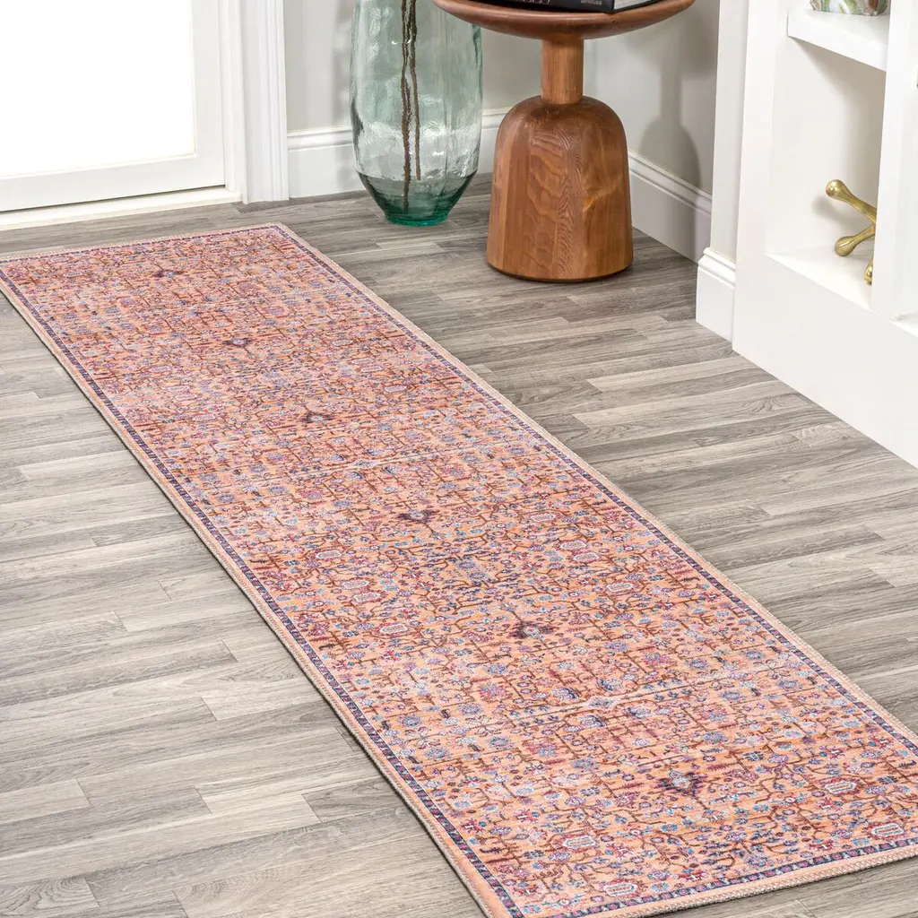 Antique Persian carpets inspired this rug's lavish botanical design. Unlike those venerable floor coverings, however, this polypropylene rug is machine washable for the utimate in convenience. A rug pad is recommended to help prevent slipping and extend the life of the rug.