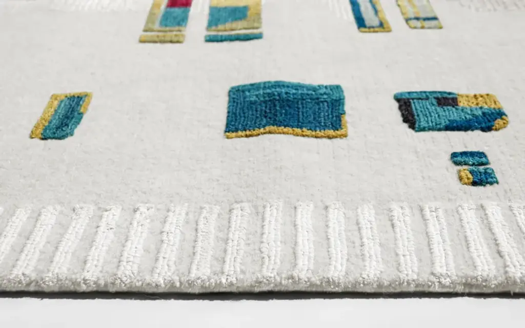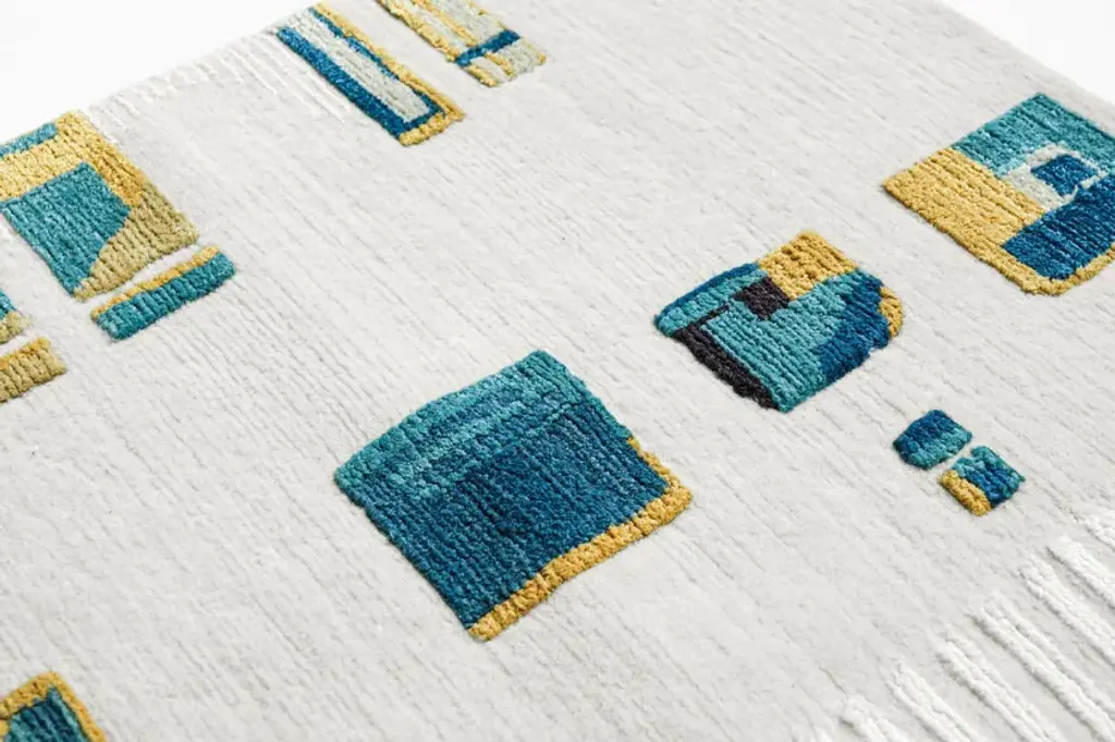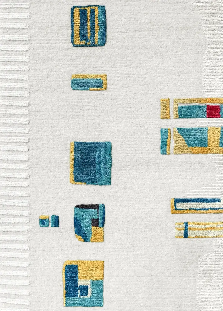 Material: Wool, SilkKnot Density: 60 knots/inch²Pile Height: 4 - 5mmTechnique: Hand-knottedCustom sizes and colors on requestThe Ambiance Collection was born from a travel journal, notes of textures, colors, and materials, of which the imprint in memory slowly fades, synthesizes, and crystallizes into new forms. These hand-knotted rugs are made from high-quality silk and New Zealand wool and feature graphic lines and geometric patterns playing on different levels of contrast to add a dynamic touch. The collection is available in rectangular shapes and four standard sizes; the color combination includes warm, pastel, and neutral tones, making it easy to find the perfect match for every interior design project.