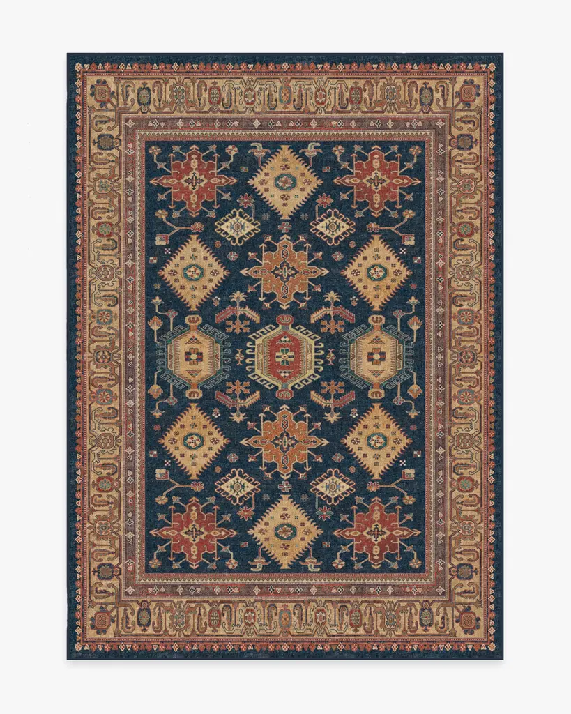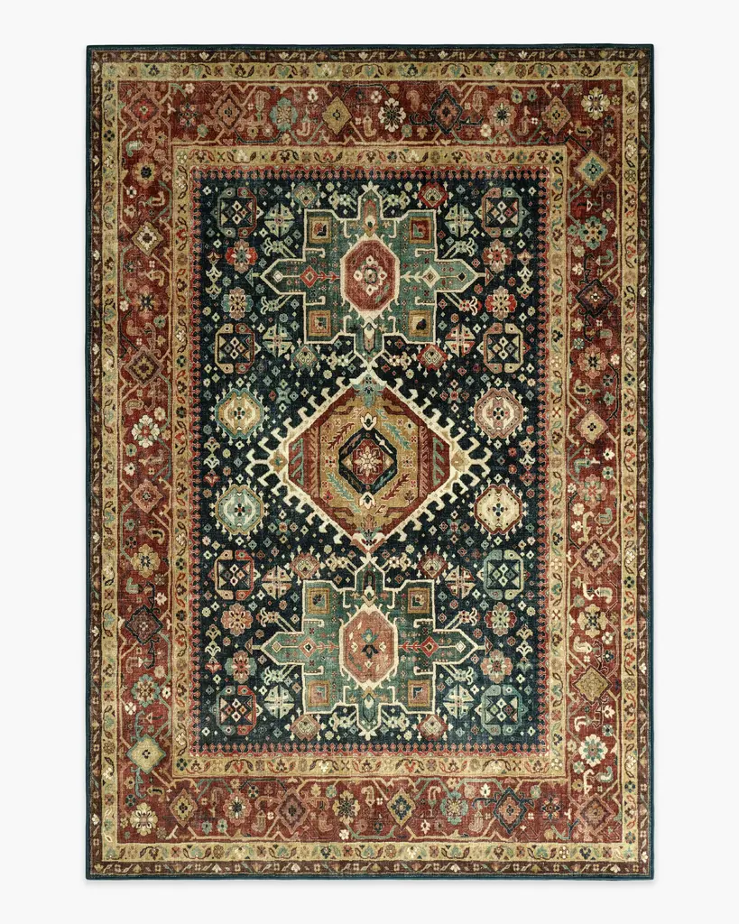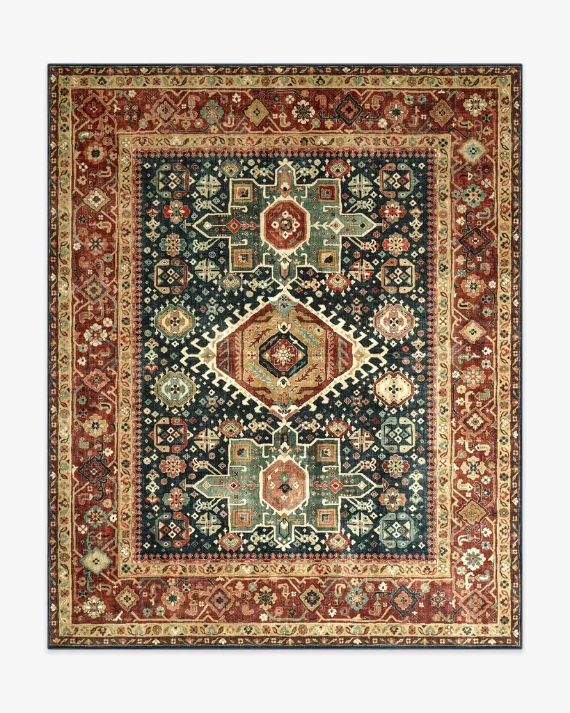 Add worldly influence to your home's interior. Our Cambria Ruby Rug features an intricate pattern reminiscent of a Persian design and is elegantly rendered in hues of ruby red, blood orange, beige, and brown hues. Water-resistant, stain-resistant, and machine-washable.