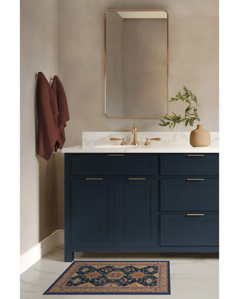 Add culture and worldly charm to your home furnishing with our Cambria Sapphire Rug. This time-honored blue Persian rug design features an intricate pattern of sapphire blue with accents of rust red, orange, and teal, making it the perfect piece to spice up any classic, modern, or rustic-style room.