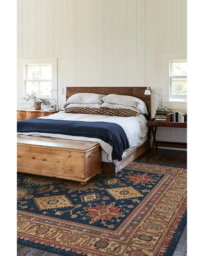 Add culture and worldly charm to your home furnishing with our Cambria Sapphire Rug. This time-honored blue Persian rug design features an intricate pattern of sapphire blue with accents of rust red, orange, and teal, making it the perfect piece to spice up any classic, modern, or rustic-style room.
