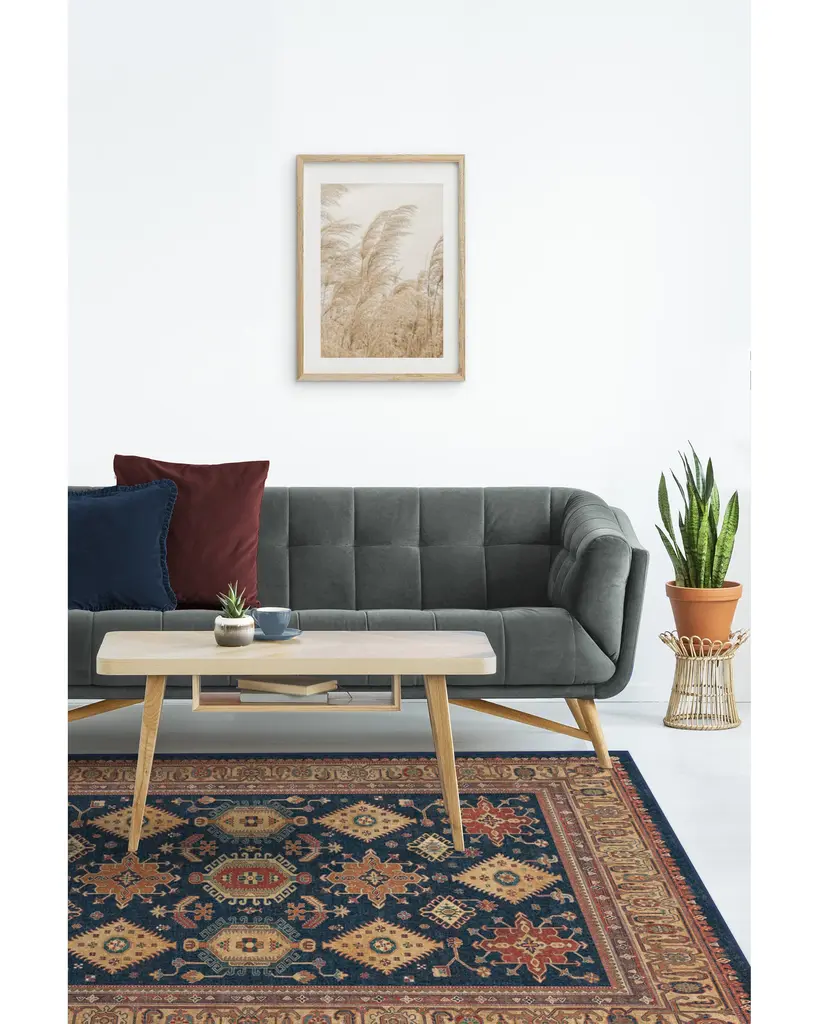 Add culture and worldly charm to your home furnishing with our Cambria Sapphire Rug. This time-honored blue Persian rug design features an intricate pattern of sapphire blue with accents of rust red, orange, and teal, making it the perfect piece to spice up any classic, modern, or rustic-style room.