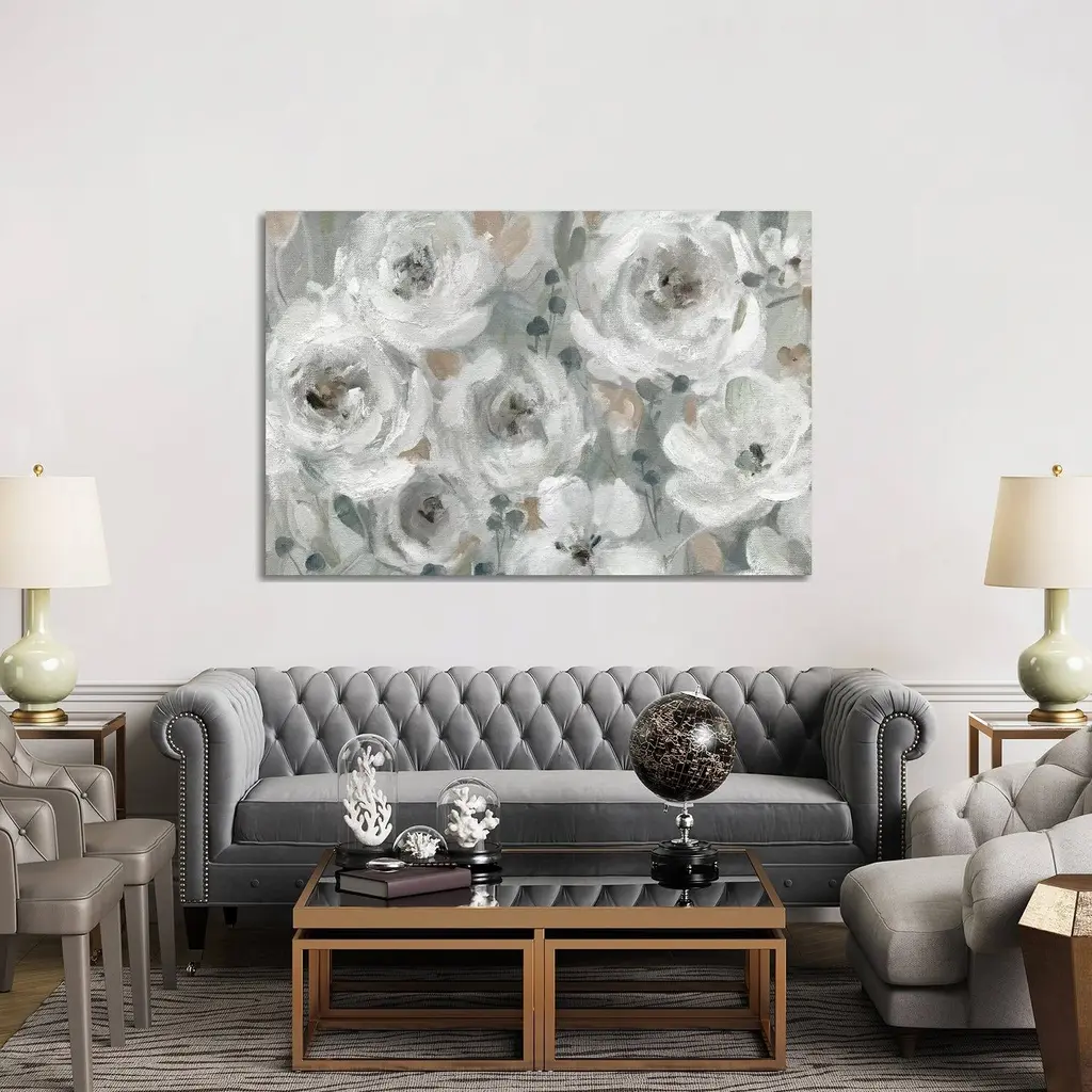 Our Camellia Jade rug uses textured brush strokes in pastel colors to create a romantic floral motif.