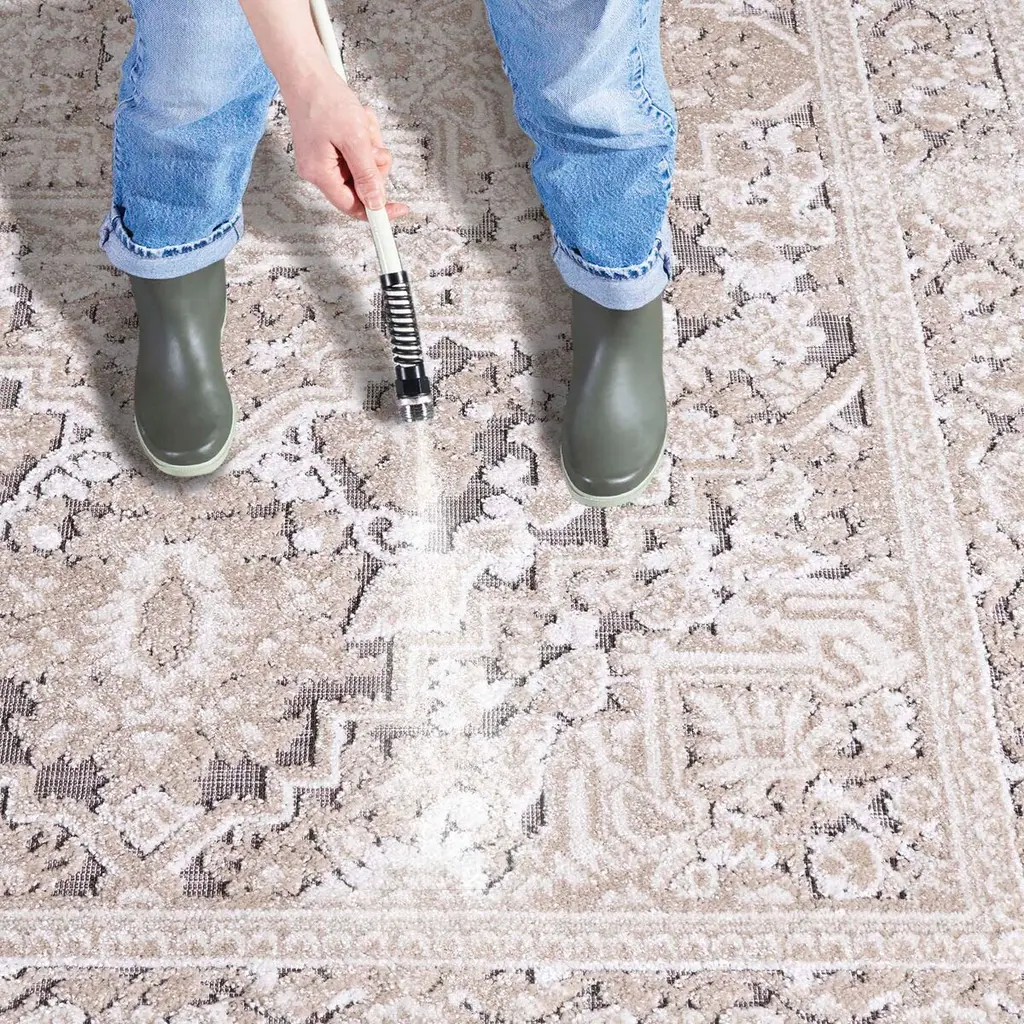 Step up your interior design with this tasteful area rug. Expertly crafted in Turkey, its exquisite transitional style adds a touch of charm to any room. Woven using a power loom, this area rug has striking durability, promising to add warmth and personality to your space for a long time. Crafted from high-quality polypropylene, it combines an attractive aesthetic with practical convenience. This rug features an elegant shape with a 3/8" height, making it perfect for various spaces, adding a sophisticated touch while providing comfort and softness underfoot. It seamlessly blends with various decor styles. Trust in the quality assurance that comes with its OEKO-TEX certification. This rug is not just a piece of frieze, it is a masterpiece that embodies tradition, style, and modern convenience for a truly perfect finishing touch.