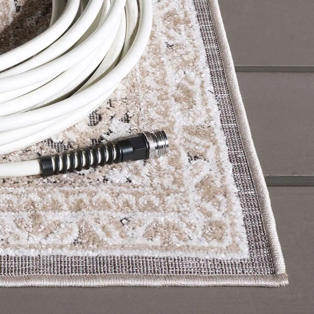 Step up your interior design with this tasteful area rug. Expertly crafted in Turkey, its exquisite transitional style adds a touch of charm to any room. Woven using a power loom, this area rug has striking durability, promising to add warmth and personality to your space for a long time. Crafted from high-quality polypropylene, it combines an attractive aesthetic with practical convenience. This rug features an elegant shape with a 3/8" height, making it perfect for various spaces, adding a sophisticated touch while providing comfort and softness underfoot. It seamlessly blends with various decor styles. Trust in the quality assurance that comes with its OEKO-TEX certification. This rug is not just a piece of frieze, it is a masterpiece that embodies tradition, style, and modern convenience for a truly perfect finishing touch.