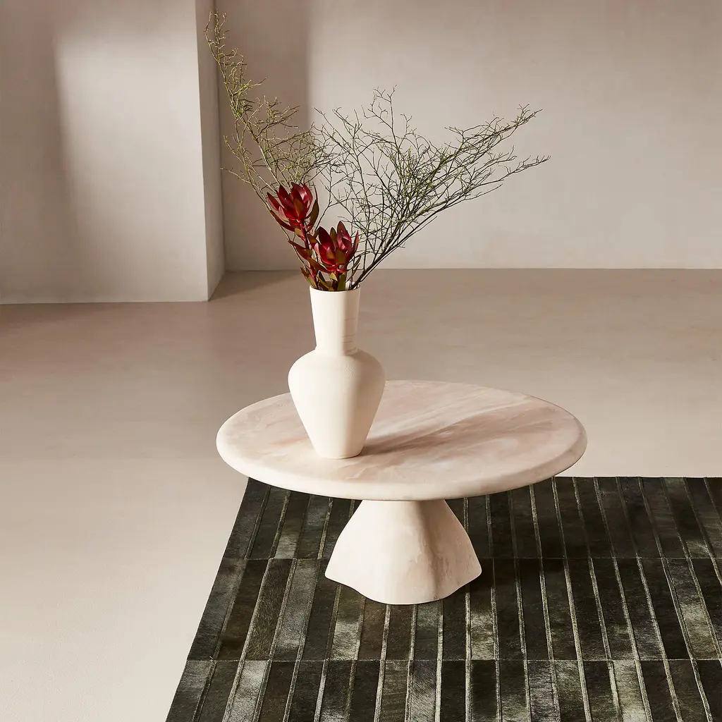 Designed by London-based Studio ANANSI, geometric hide rug is pieced by hand and stitched from soft hair-on hide in a modern grid pattern. Distinctive marks and tonal variations make each rug naturally one of a kind. CB2 exclusive.How will it look in your room? 12"x12" rug samples are available in stores for a fee refundable upon return of the sample.