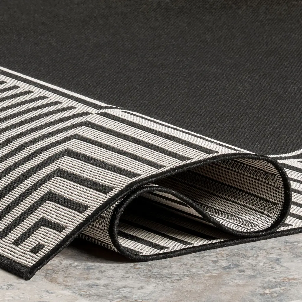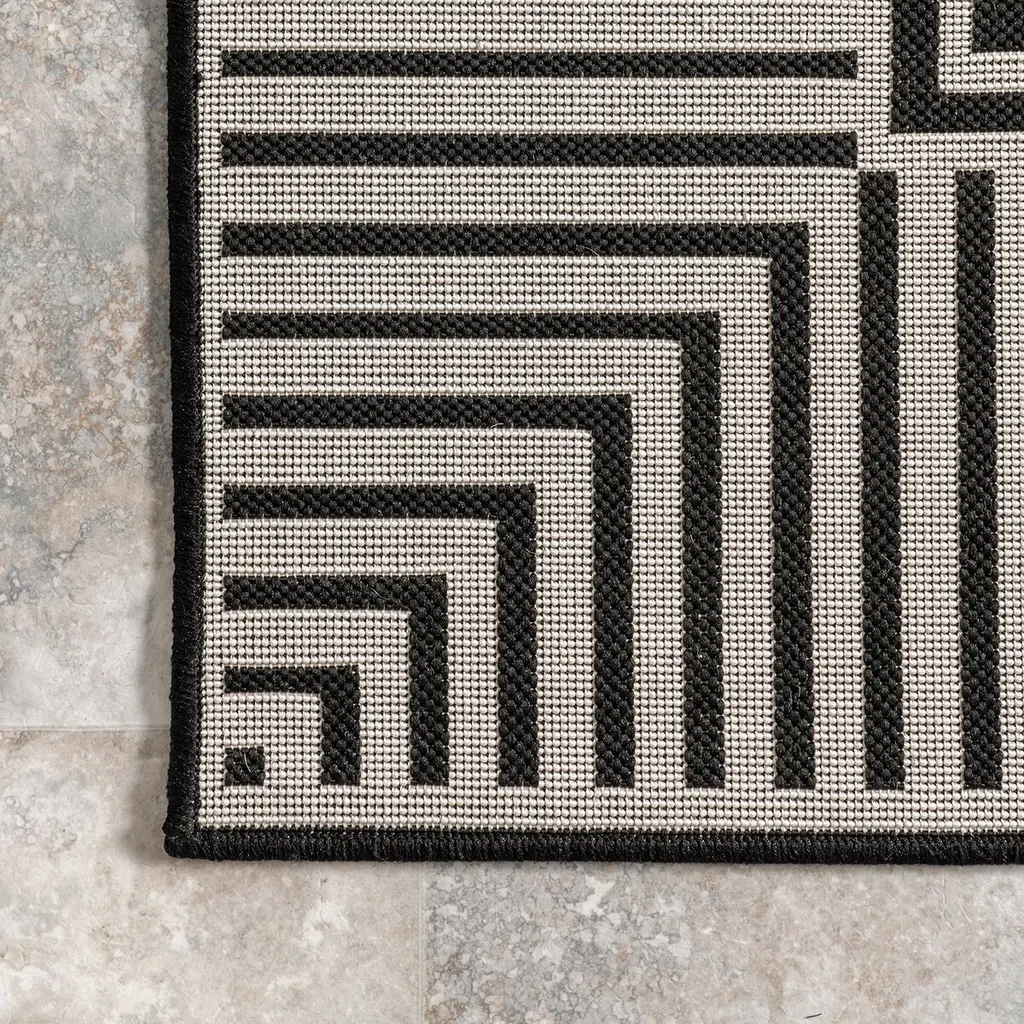 Whoever said beautiful floor accents are only for inside the home hasn’t yet met an indoor/outdoor area rug. This casual rug will warm up any space with its simple yet beautiful striped border. Made from durable fibers that are perfect for any high traffic areas and will last for years to come. Kick back and relax with our easy to care for and pet-friendly area rugs.