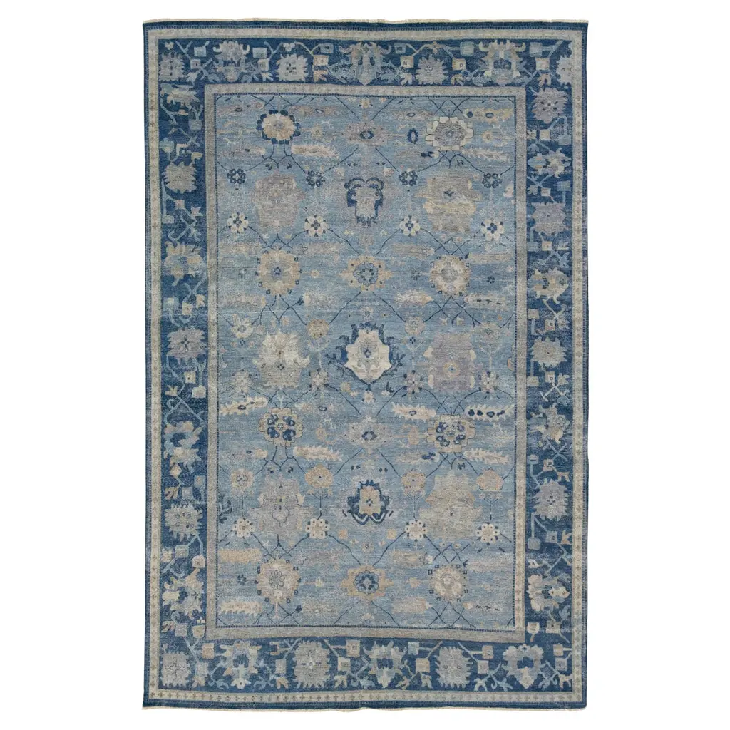 Part of our Masterpiece Collection that draws from the rich heritage of traditional, Turkish Oushak rugs. Woven and hand-knotted by master weavers in India, every detail – from the intricate motifs down to the finest yarn – speaks to the unparalleled quality and artisan craftsmanship of these vintage-inspired rugs. The Camille Navy Hand Knotted Wool Rug brings a perfect touch of style and warmth to your space. Its deep navy background beautifully contrasts with the taupe medallions and border, creating a visual masterpiece. A true work of art, this rug offers a lush feel underfoot, making every step a luxurious treat.