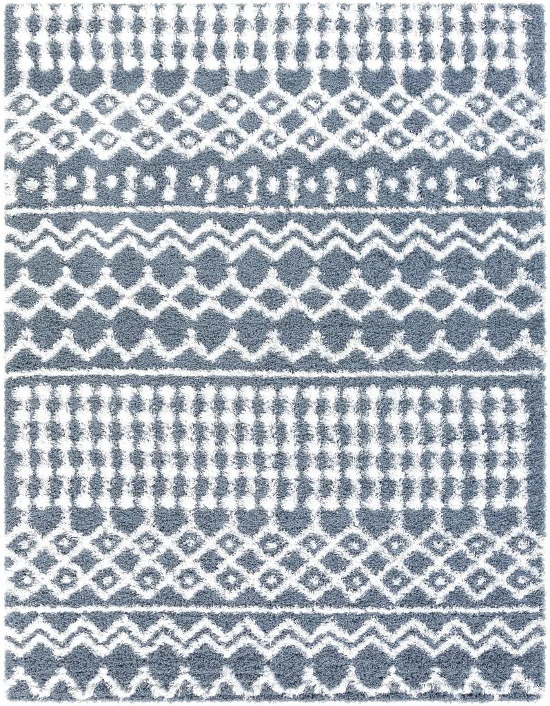 Collection: Camp Colors: Denim, White Construction: Machine Woven Material: 100% Polypropylene Pile: Plush Pile Pile Height: 1.97" Styles: Transitional,Bohemian Made In: Turkey Thickness: 2.05" Price Range: $$$$$ (Most Affordable)