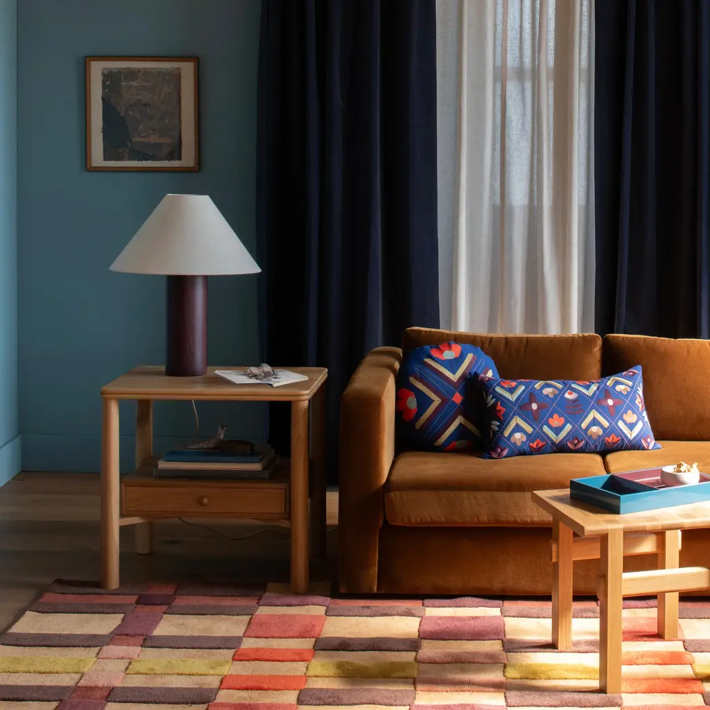 Radiating with color and collegiate charm, the Campus Wool Rug takes its cues from iconic university quads, pathways, and buildings. Design inspired by a classic plaid with nostalgic academic hues, the pattern creates a beautiful gradation from center to border. Crafted with a recessed pile that adds subtle depth and texture, this heirloom-worthy rug brings distinction, warmth, and a touch of academic nostalgia to any space.