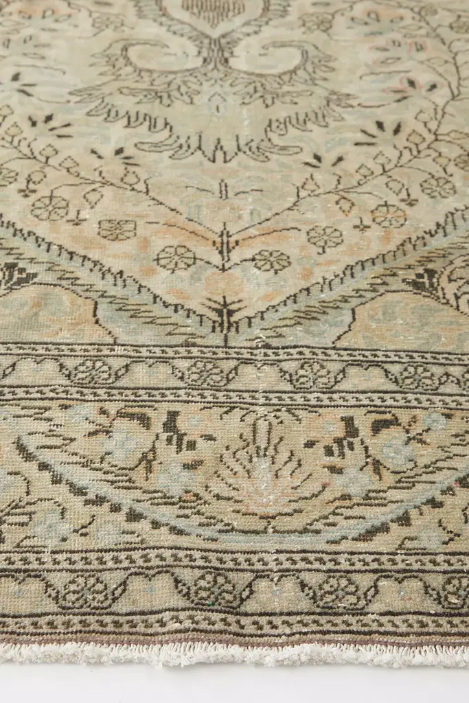 This beautiful worn rug has an whimsical pattern that tells a story. The soft hues with hints of faded peach and periwinkle will be perfect for a space that needs some charm. The size is perfect for just about any space in your home and would look great in a living room or bedroom. With a passion for handmade global goods, Canary Lane travels to remote corners of the world to carefully curate an exclusive collection of rare, ethically sourced, heirloom vintage rugs. Each rug is handwoven and one-of-a-kind with its own unique story to tell, making it a beautiful conversation piece for your home.* Wool#### *Dimensions** 6'6'' X 9'8''