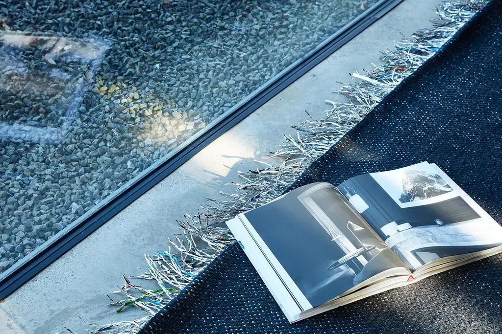 Candy wrapper rug // indoor // German Design Award winnerHere at NOMAD, we believe in innovation, in pushing boundaries and redefining the image of re- and upcycling in the interior industry. Our goal is to create design products with a special feel, a unique look and a meaningful story.The Candy Wrapper Rug forms the heart of our Nomad collection. It is our initial spark to weave carpets from leftover material. The Candy Wrapper Rug is a woven carpet. The chain is made of candy wrapper (20%) and new wool (80%). The Candy Wrapper Rug adapts to its surroundings. On cloudy days, it looks simple and calm. Daylight, the sun or artificial light make it shine. Almost like a surface of water on which the sun is dancing. Every Candy Wrapper Rug is unique and there is only one in the world.Available in 5 formats and 9 colors. Special formats possible on request.