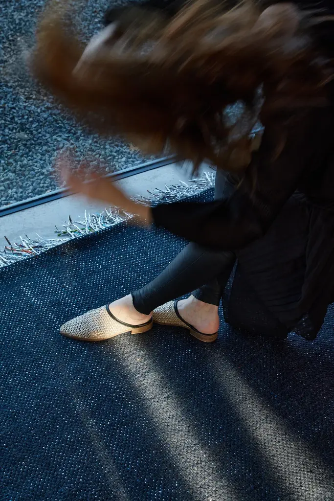 Candy wrapper rug // indoor // German Design Award winnerHere at NOMAD, we believe in innovation, in pushing boundaries and redefining the image of re- and upcycling in the interior industry. Our goal is to create design products with a special feel, a unique look and a meaningful story.The Candy Wrapper Rug forms the heart of our Nomad collection. It is our initial spark to weave carpets from leftover material. The Candy Wrapper Rug is a woven carpet. The chain is made of candy wrapper (20?%) and new wool (80?%). The Candy Wrapper Rug adapts to its surroundings. On cloudy days, it looks simple and calm. Daylight, the sun or artificial light make it shine. Almost like a surface of water on which the sun is dancing. Every Candy Wrapper Rug is unique and there is only one in the world.Available in 5 formats and 9 colors. Special formats possible on request.