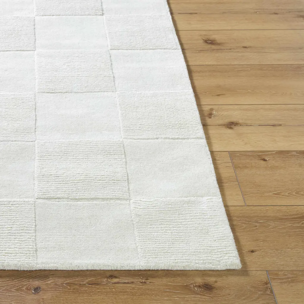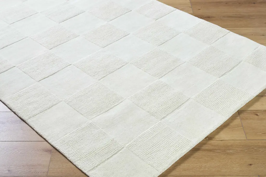 Collection: Canice Colors: Light Silver Construction: Hand Loomed Material: 100% Wool Pile: Medium Pile Pile Height: 0.4" Styles: Transitional,Bohemian Backing: Canvas Made In: India Thickness: 0.55" Price Range: $$$$$ (Affordable)
