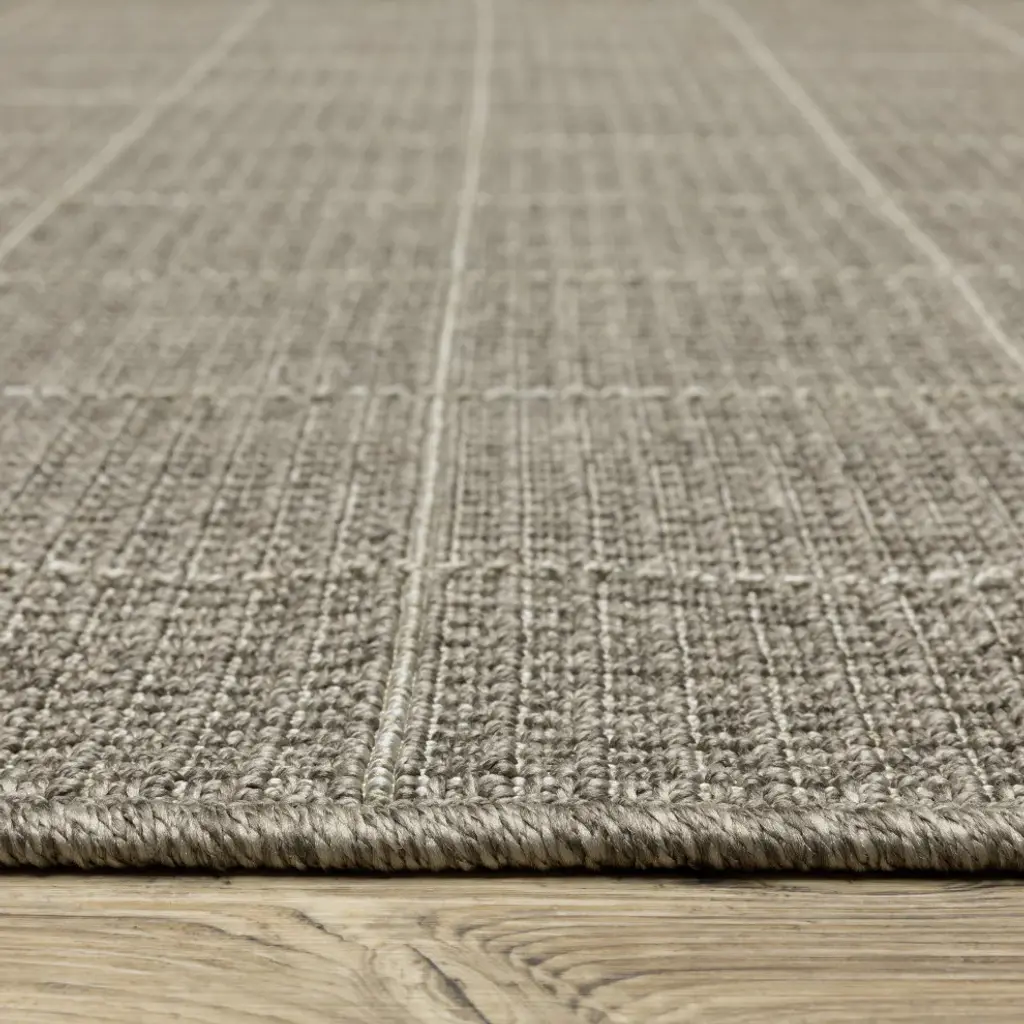Cannes Gridwork Grey/ Light Grey Indoor-Outdoor Area Rug 6'7" X 9'2"