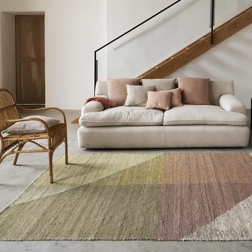 Designed by Mathias Hahn, the Capas Area Rug by Nanimarquina has a light and straightforward composition, while its design is dimensional and complex. This 100% hand-spun Afghan wool rug uses a Kilim weaving technique to mix colors together, creating new colors as it explores the interplay between layers, shadows, and depth.