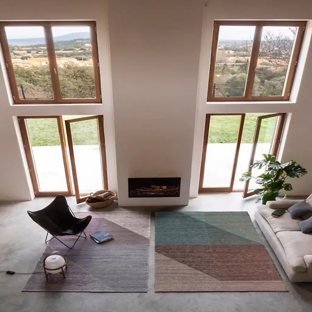 Designed by Mathias Hahn, the Capas Area Rug by Nanimarquina has a light and straightforward composition, while its design is dimensional and complex. This 100% hand-spun Afghan wool rug uses a Kilim weaving technique to mix colors together, creating new colors as it explores the interplay between layers, shadows, and depth.