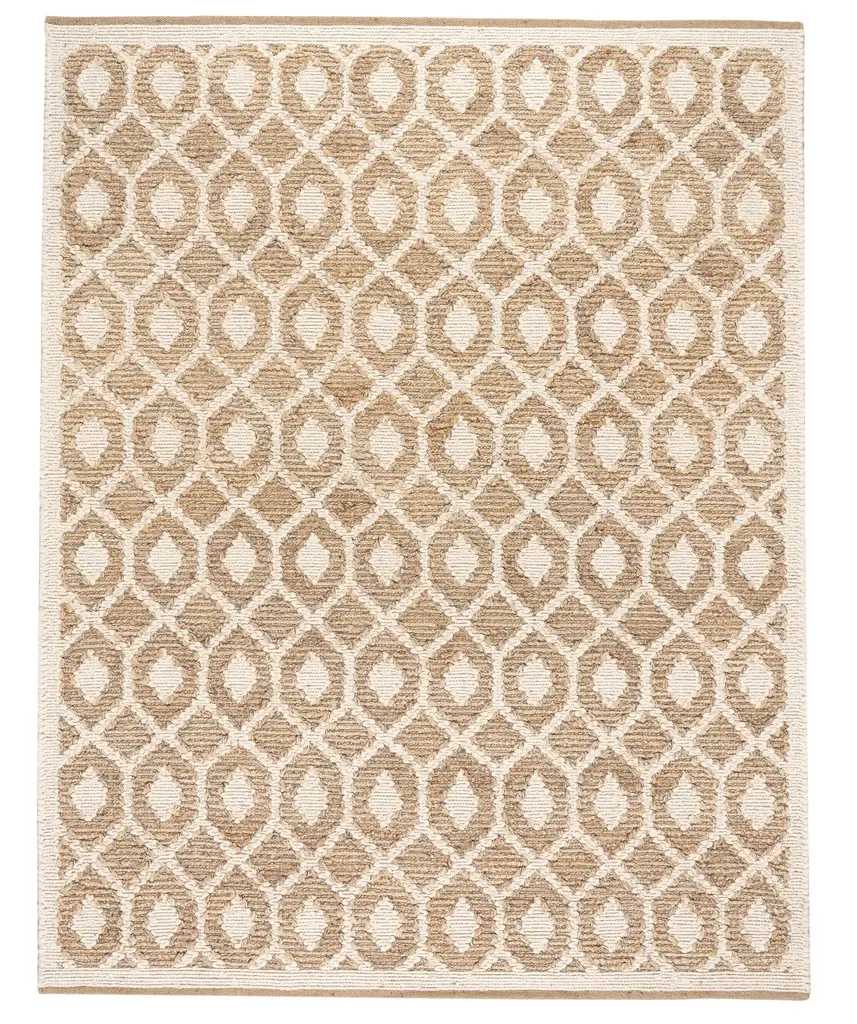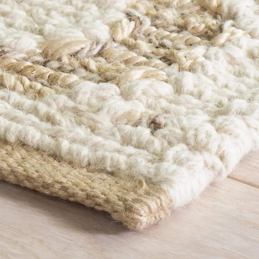 Soft, durable and highly textured in jute and wool. Soumak weaving adds texture, strength and dimension by wrapping each warp yarn with the weft, a technique that can only be done by hand. The pattern of this rug is has added definition through the outline of both color and texture, creating a compelling visual organic statement for the modern interior.