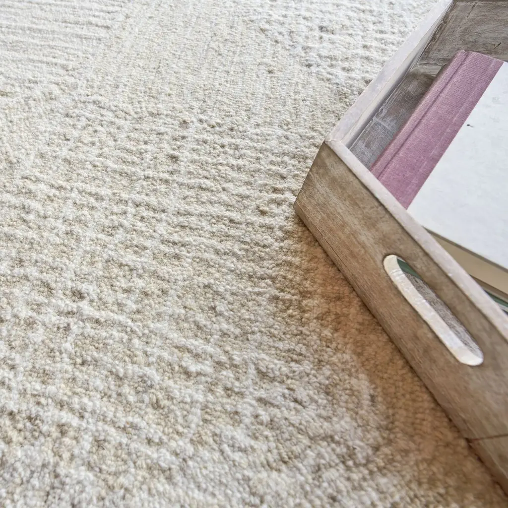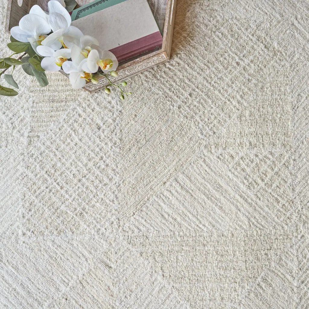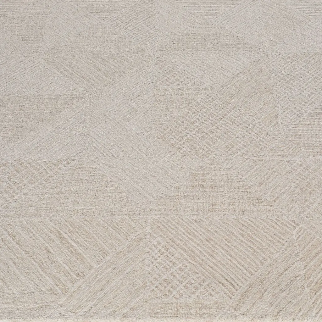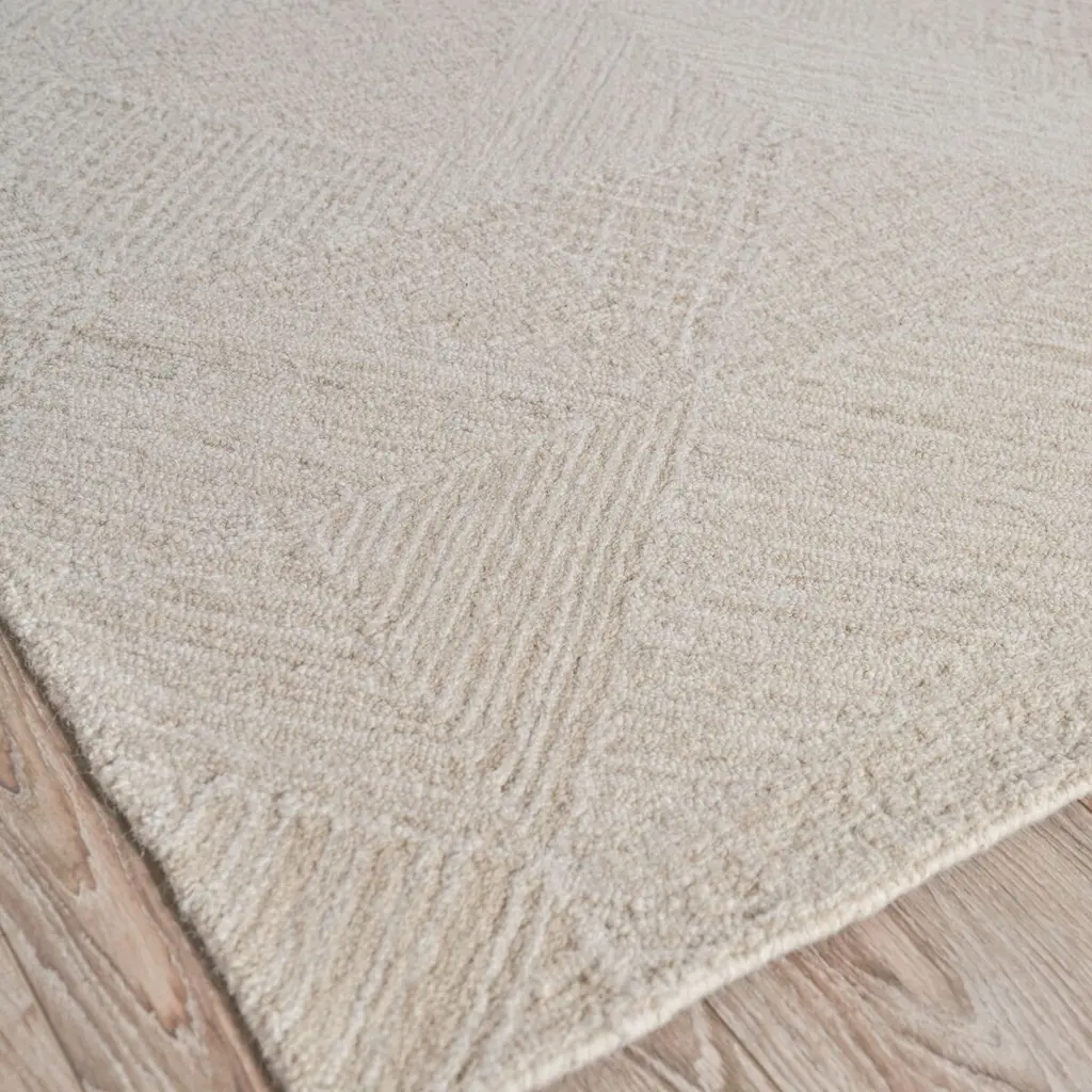 This rug is handcrafted of New Zealand wool, prized for its softness and durability, and cotton. Its geometric motif and neutral palette make it a welcome addition to a wide range of rooms. A rug pad is recommended to help prevent slipping.