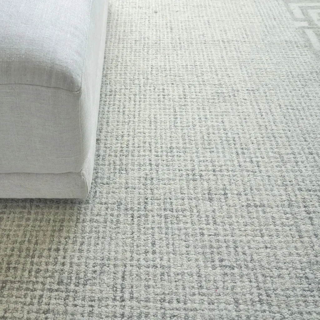This rug is handcrafted of New Zealand wool, prized for its softness and durability, and cotton. Its geometric border makes it a welcome addition to traditional and contemporary rooms alike. A rug pad is recommended to help prevent slipping.