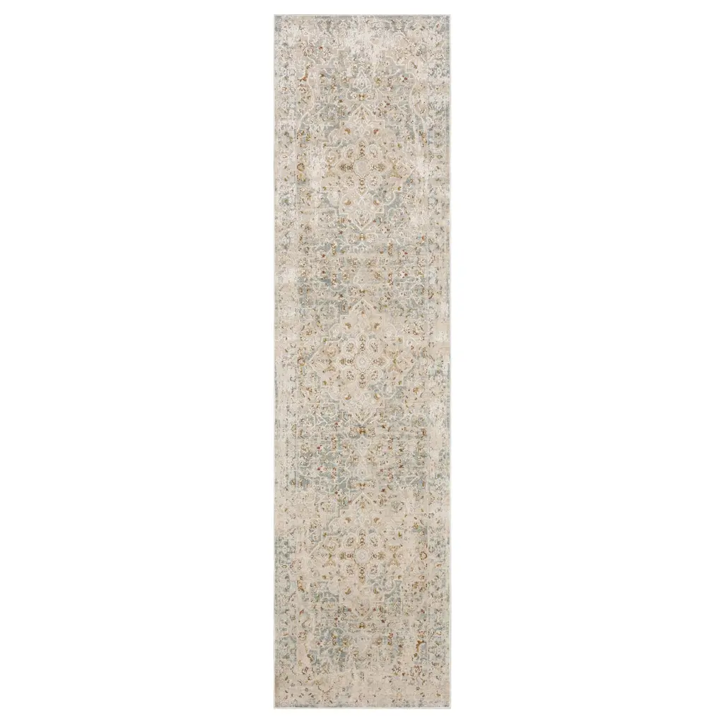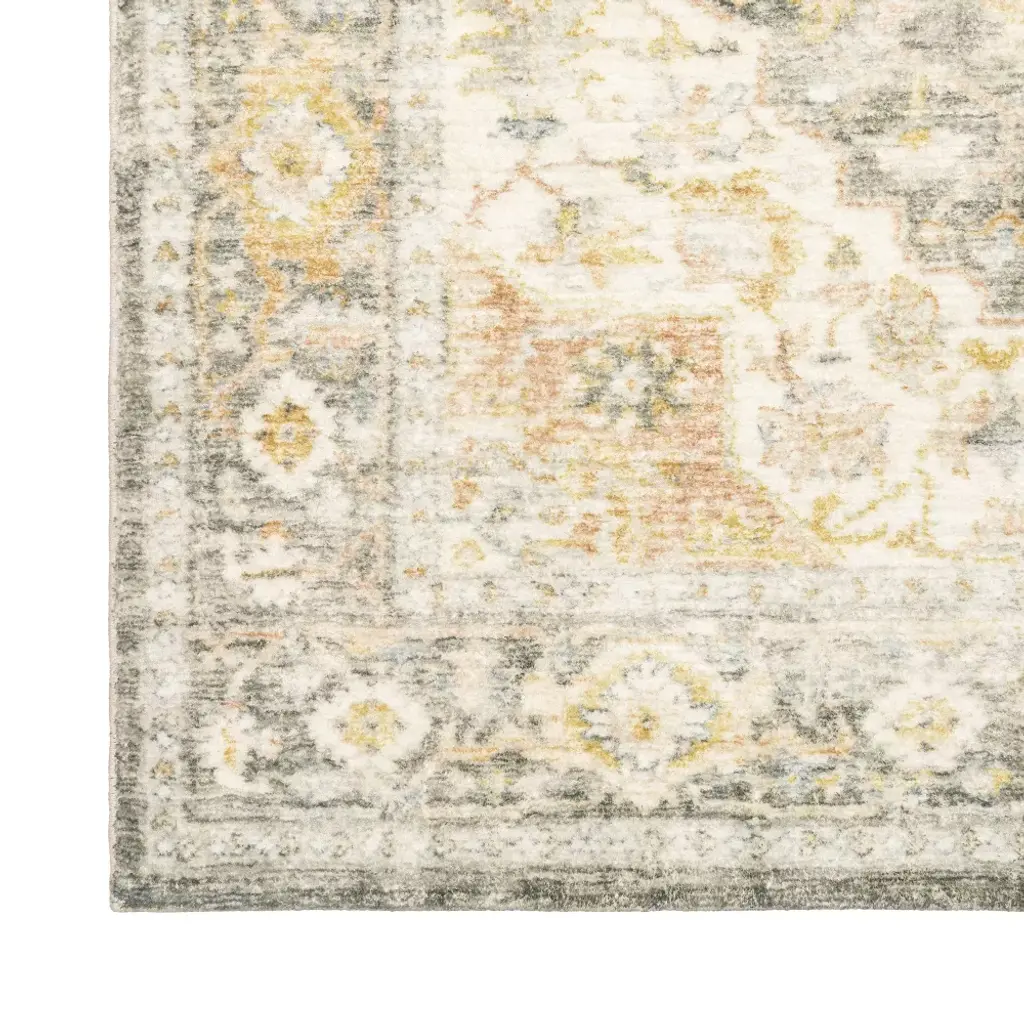 Captiv8e Designs 2'x8' Runner Salina Vintage Medallion Area Rug Gray/gold: 8 Foot Hallway Runner, Washable, Fade-resistant