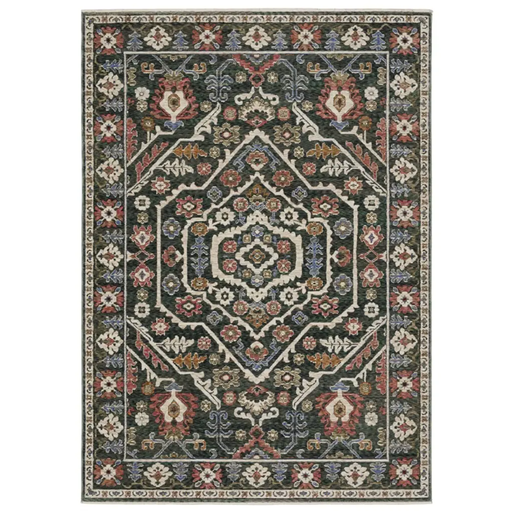 Explore the Hanford collection, a collection of global inspiration and traditional charm. Each rug is power-loomed with space-dyed polyester, featuring a 1.4 million point construction for a richly textured experience. The color palette is a treasure trove, from the regal jewel tones of ruby and sapphire to the earthy elegance of jade, olive, and warm clay, ensuring a majestic transformation of any space.
