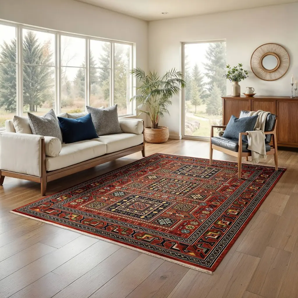 Captiv8e Designs 6'7"x9'6" Langdon Global Inspired Red Wool Area Rug