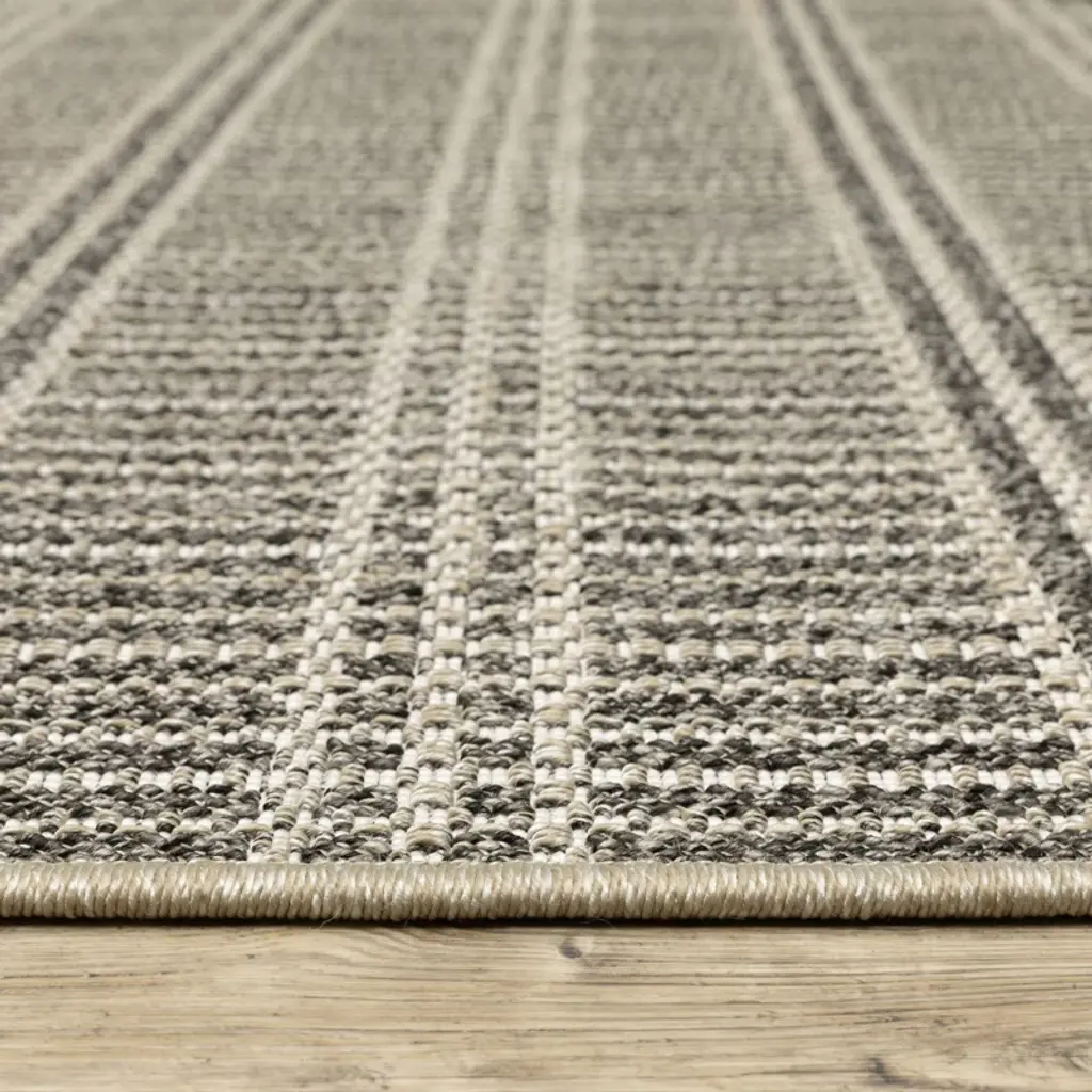 Introducing the Grimaldi collection, where subtle patterns and textures converge to create a globally inspired ambiance. The tonal shades of gray, ivory, and black are power-loomed with polypropylene for resilience and style. The flatwoven design, complete with fringe, adds a layer of sophistication to any space, making it a top performer for busy areas and family living.