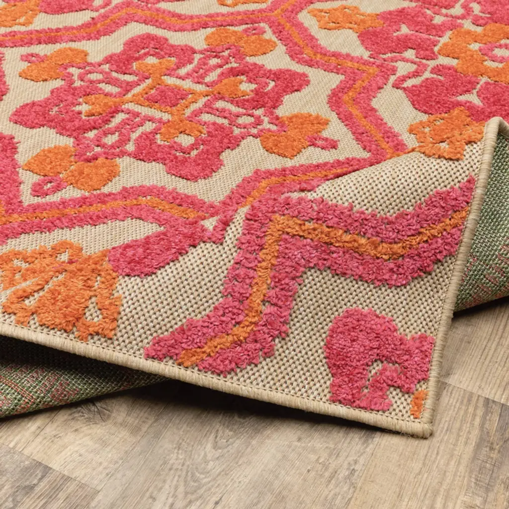 Captiv8e Designs 7'10"x10'10" Costa Mixed Pile Floral Medallions Sand/pink Indoor/outdoor Area Rug