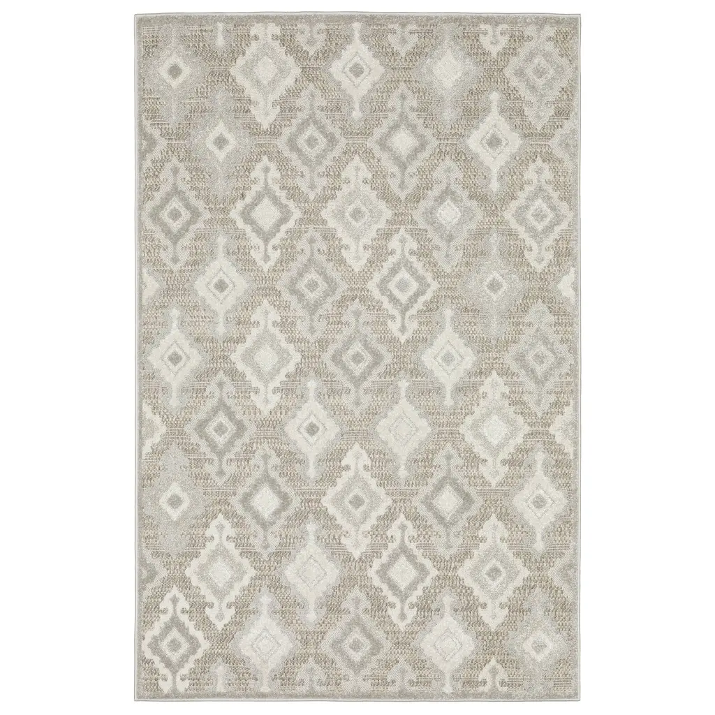 Tiana collection: Introducing the Tiana collection, where global patterns meet contemporary neutral hues from ivory to warm sand and cool gray. Power-loomed from 100% polypropylene, these rugs feature a rich texture and multi-tonal shine, offering an air of sophistication. The multi-level construction combines plush cut pile with textured loops and flatwoven areas, creating a captivating and tactile experience.