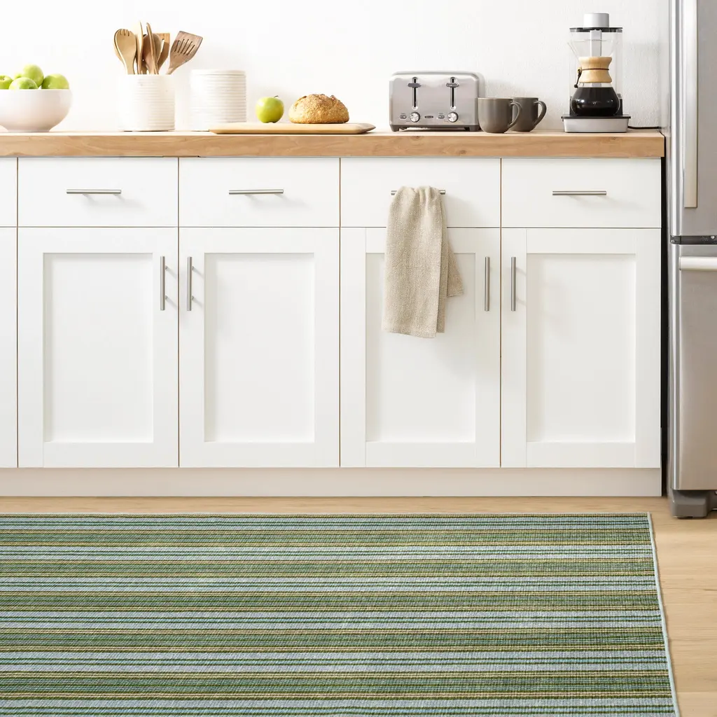 Part of our best-in-class collection of design-focused, machine-washable rugs. With a winning combination of blue and green stripes, this superior-quality, machine-washable rug is versatile enough to use in any room where a bold pop of color, an eye-catching pattern, and a durable foundation is needed. Great for homes with pets and high-traffic areas like entryways, mudrooms, and kitchens.